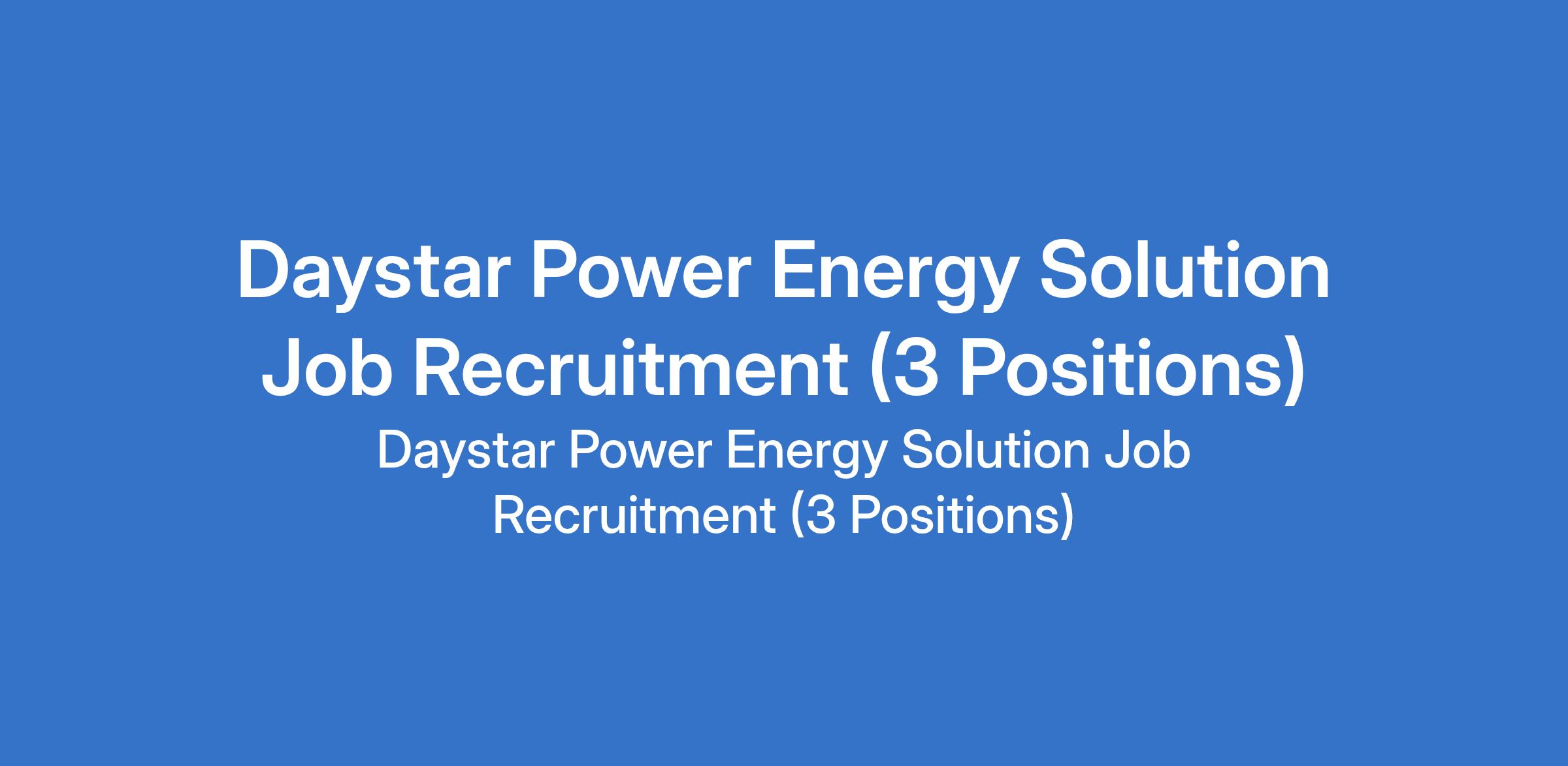Daystar Power Energy Solution Job Recruitment (3 Positions)