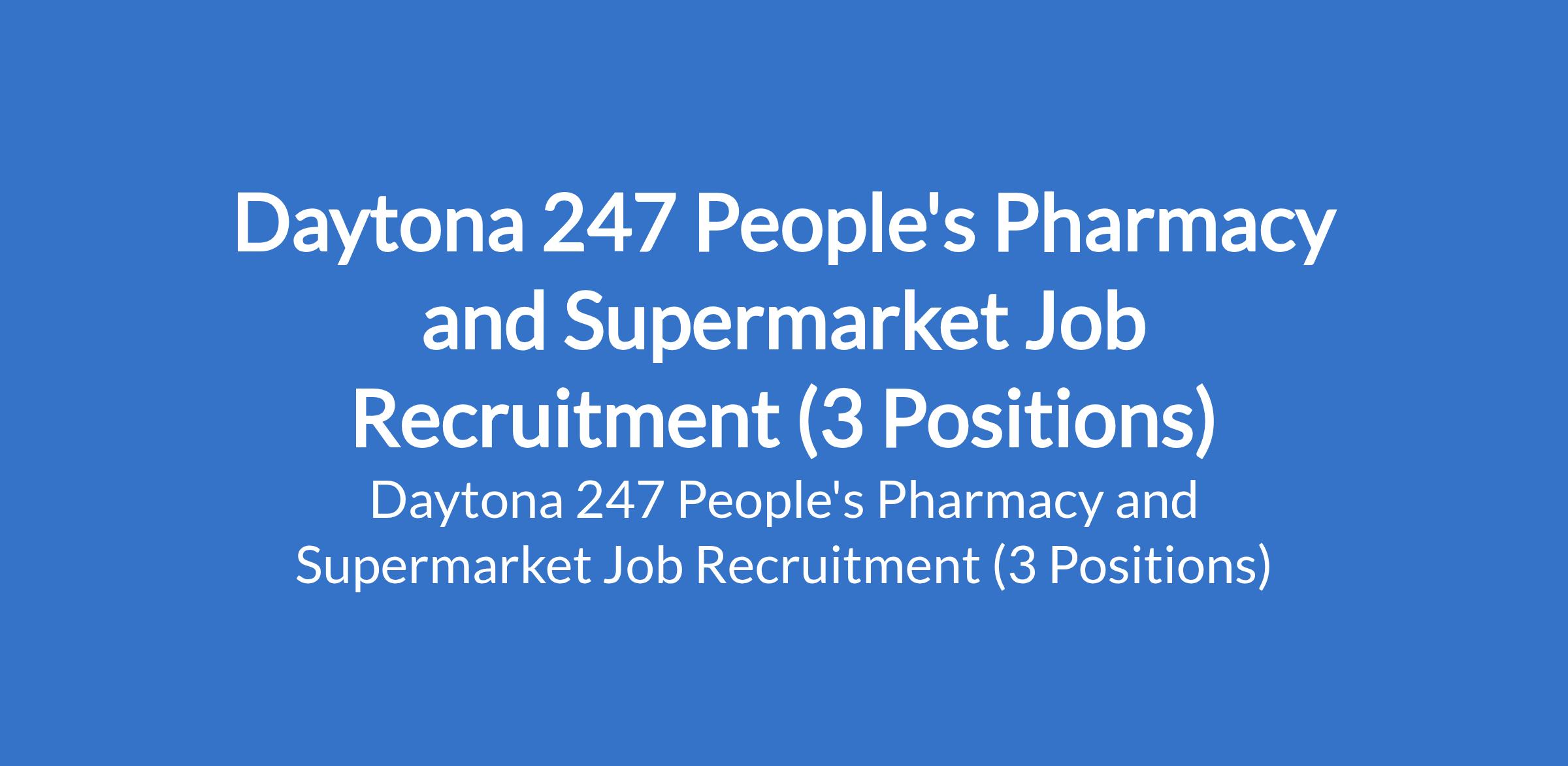 Daytona 247 People's Pharmacy and Supermarket Job Recruitment (3 Positions)