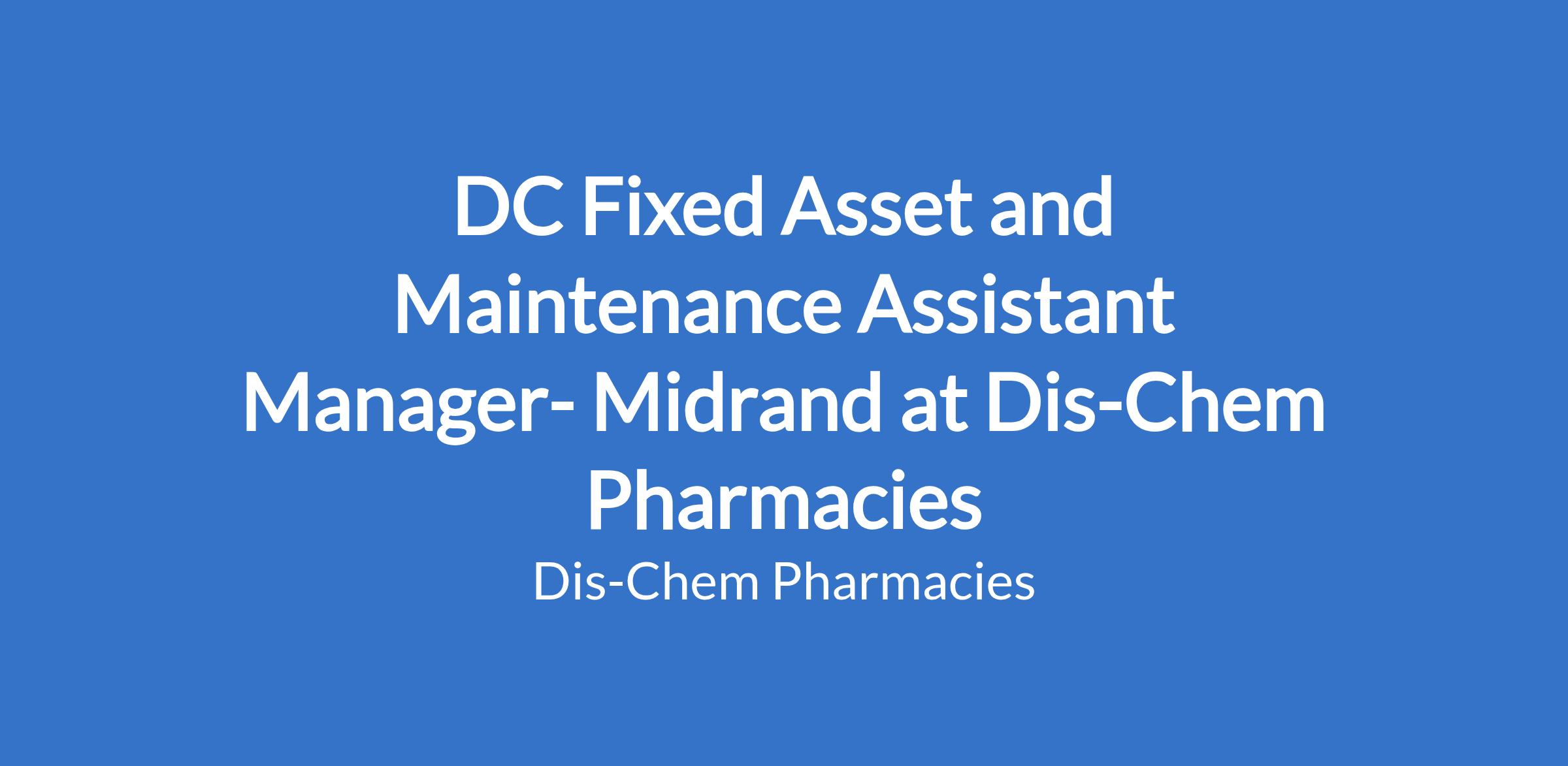 DC Fixed Asset and Maintenance Assistant Manager- Midrand at Dis-Chem Pharmacies