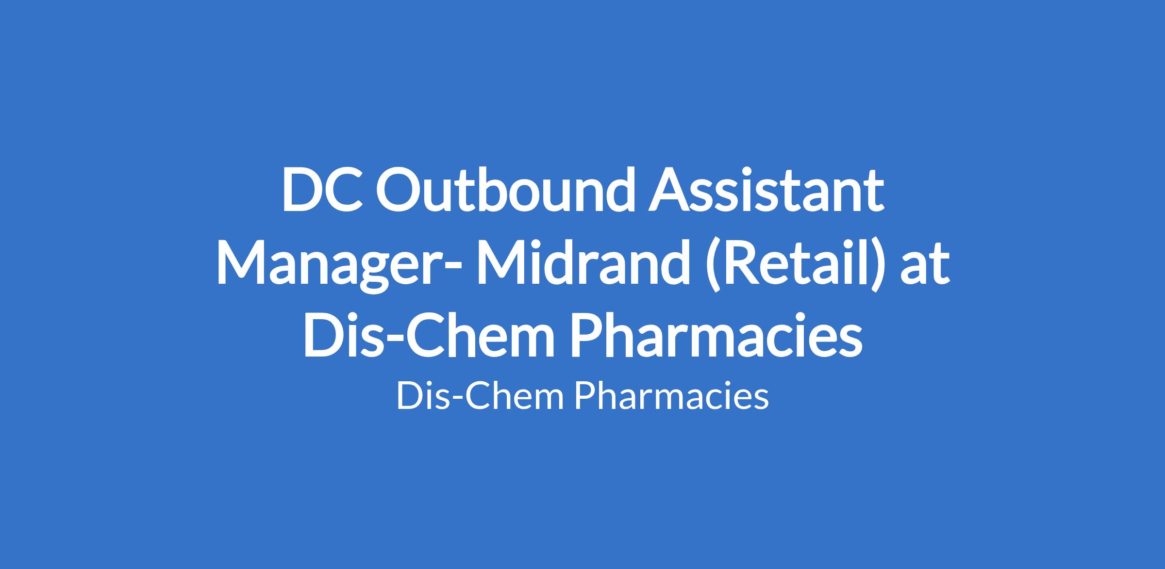 Dis-Chem Pharmacies' in Midrand has an opportunity available for a DC Outbound Assistant Manager to join the team. The main purpose of this role will be to achieve operational excellence within the Dis-Chem Distribution Centres, by performing a management function through directing and coordinating the operation of the outbound function.