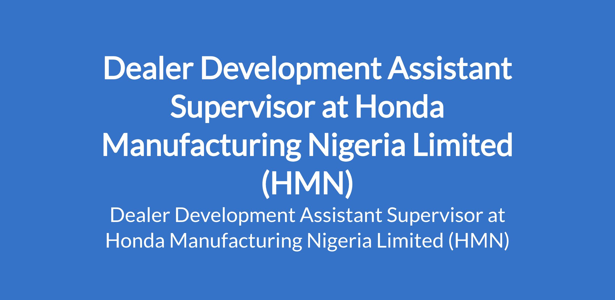 Honda Manufacturing Nigeria Limited (HMN) is recruiting to fill the position of: Dealer Development Assistant Supervisor. The position is located in Ogun State. Interested candidates should possess a Bachelor's Degree in Business, Marketing, Geography/ Town and Regional Planning or a related field with a minimum of 2 years work experience in dealer development, sales, or a related role.