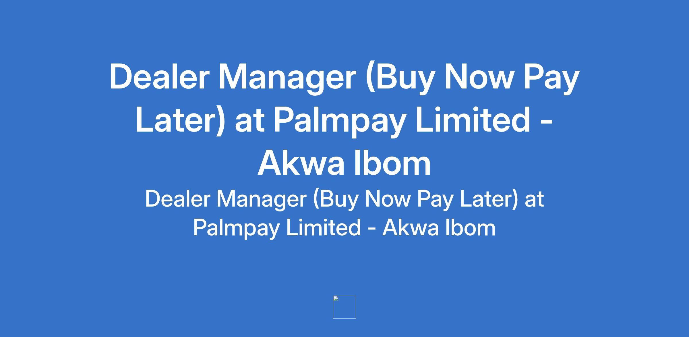 Palmpay Limited is recruiting to fill the position of: Dealer Manager (Buy Now Pay Later). The position is located in Uyo, Akwa Ibom State. Salary: N90,000 per month. The Dealer Manager will manage and grow the dealer network within an assigned territory. Interested candidates should possess relevant qualifications.