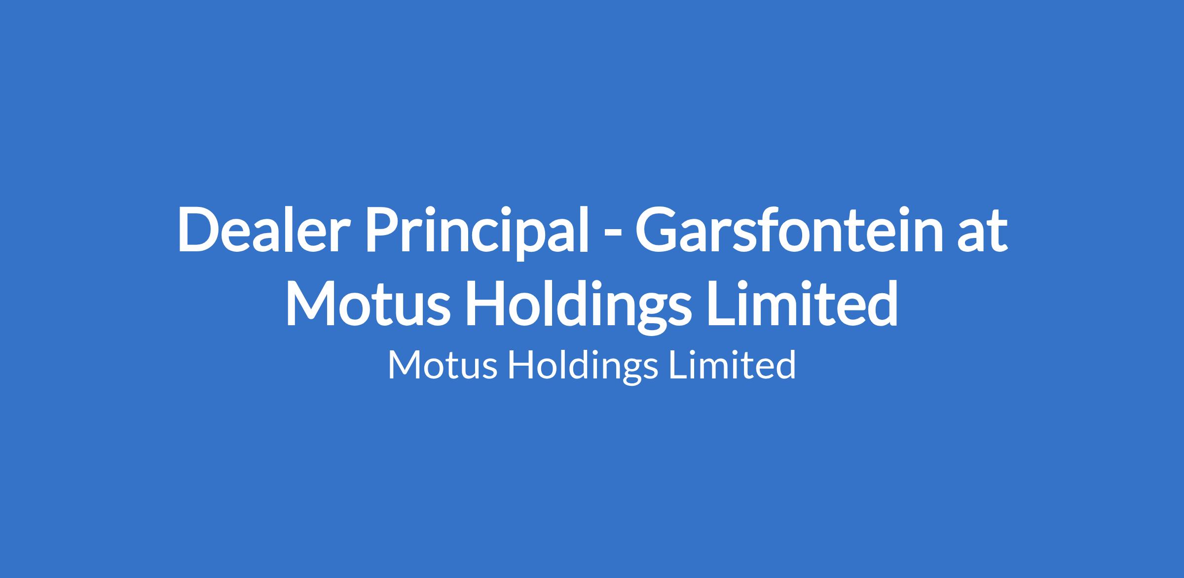 Motus Garsfontein currently holds a vacancy for a Dealer Principal.