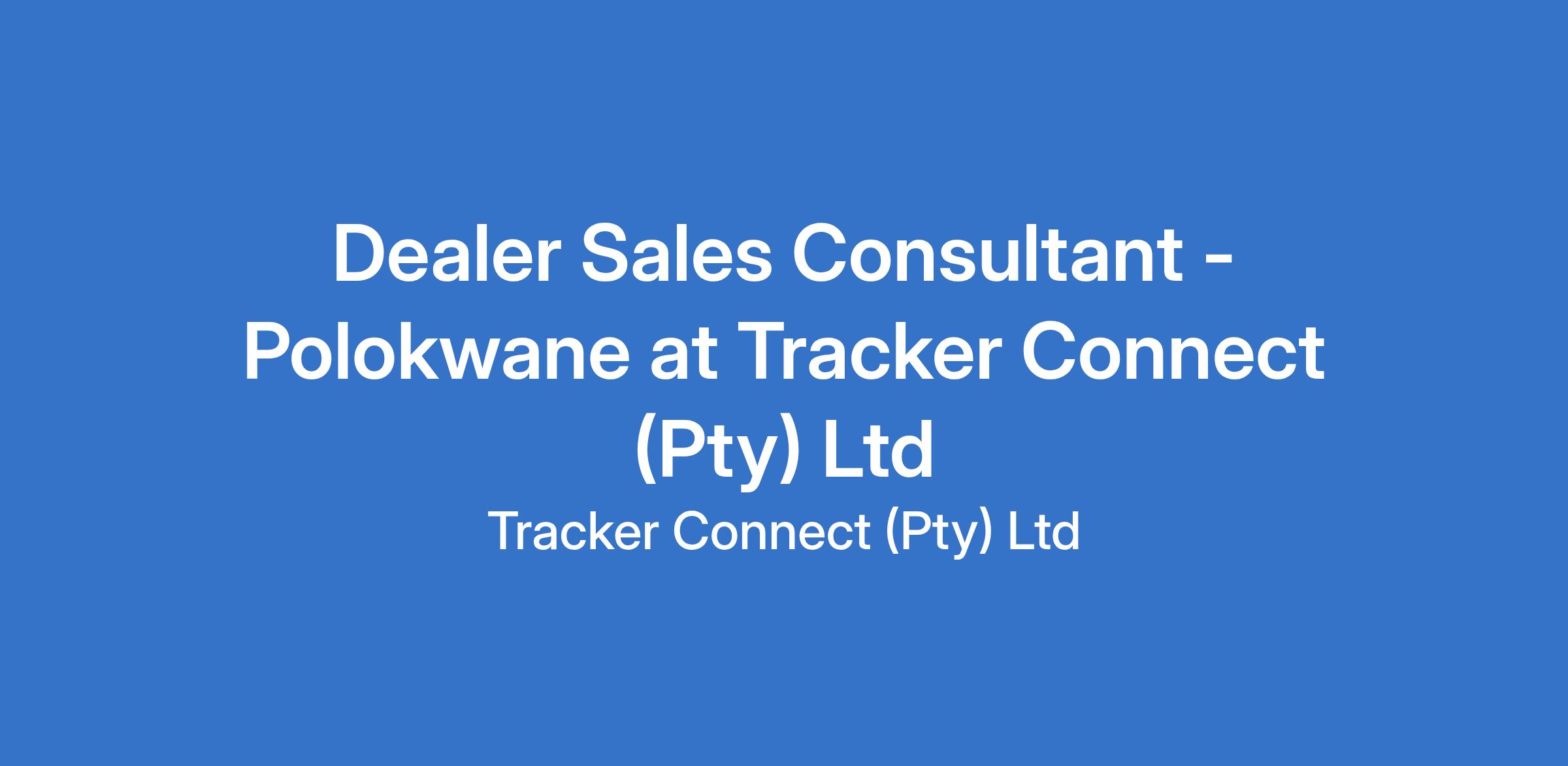 Tracker's Sales department in our Polokwane Office requires a Dealer Sales Consultant to promote TRACKER and to meet sales targets. TRACKER requires a self-starter with an outgoing personality who can communicate confidently on all levels. As this position involves travelling, a valid Driver's Licence is essential.