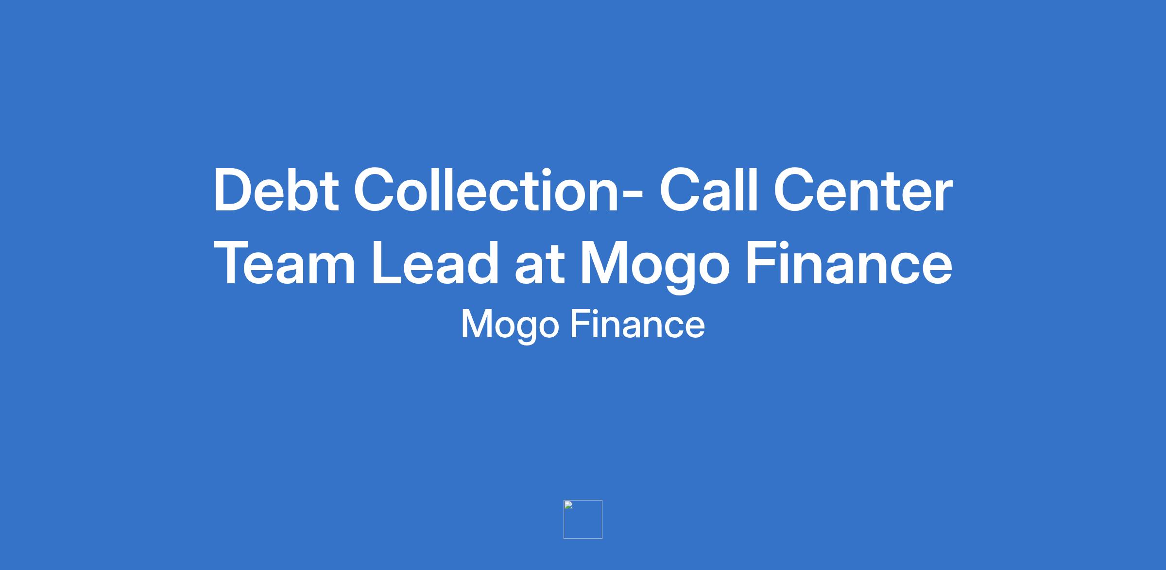 Debt Collection- Call Center Team Lead at Mogo Finance