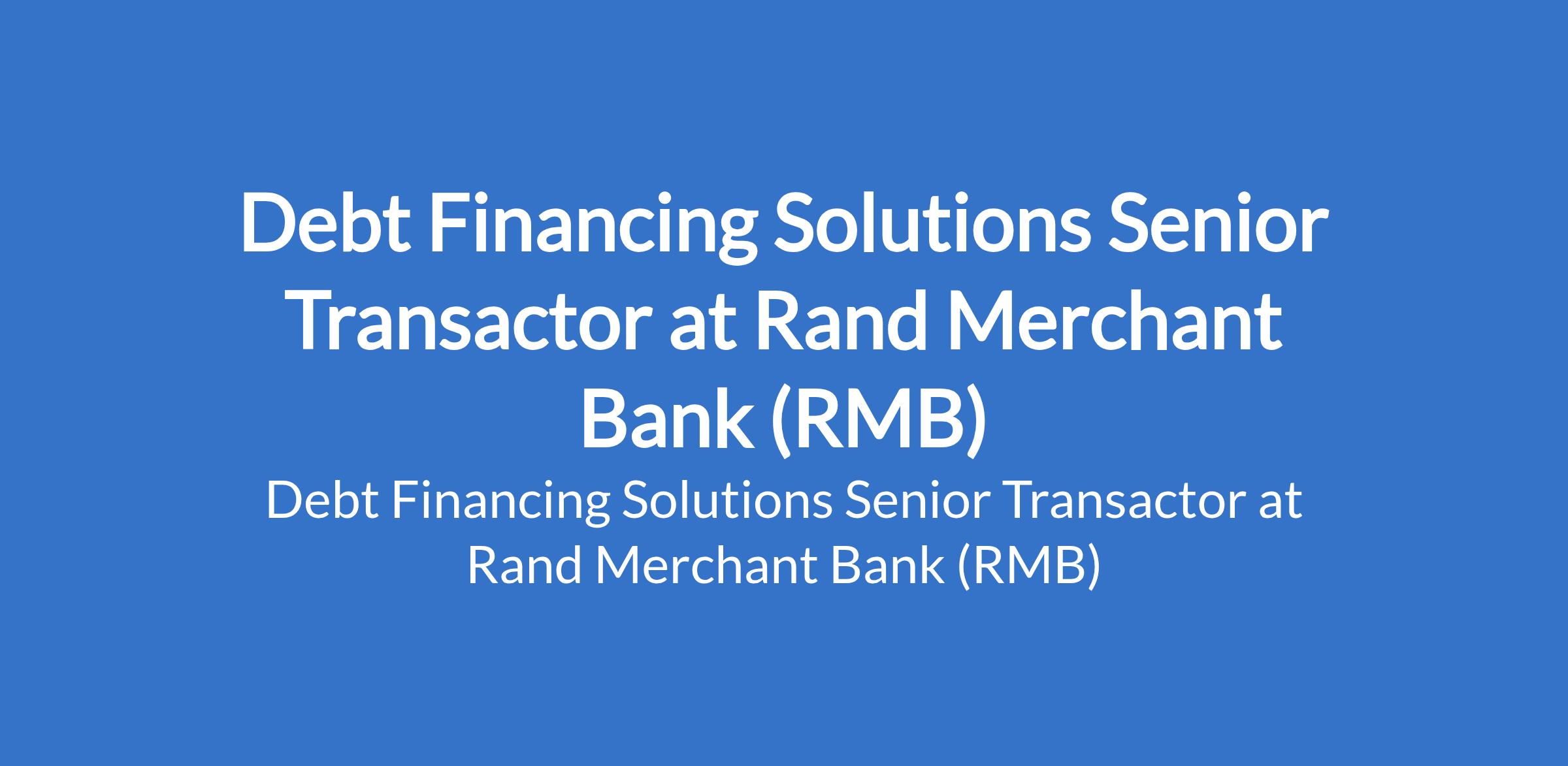 Rand Merchant Bank (RMB) is recruiting to fill the position of: Debt Financing Solutions Senior Transactor. The position is located in Lagos State. Interested candidates should possess a Relevant Bachelors Degree in relevant subject with at least 5 years of deal-making experience (corporate & structured finance).
