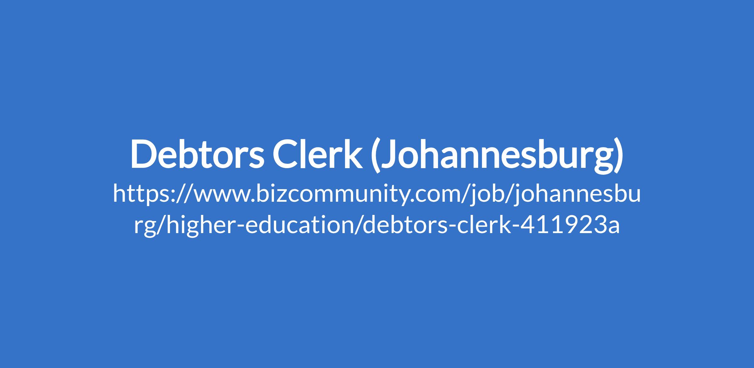 Debtors Clerk (Johannesburg)