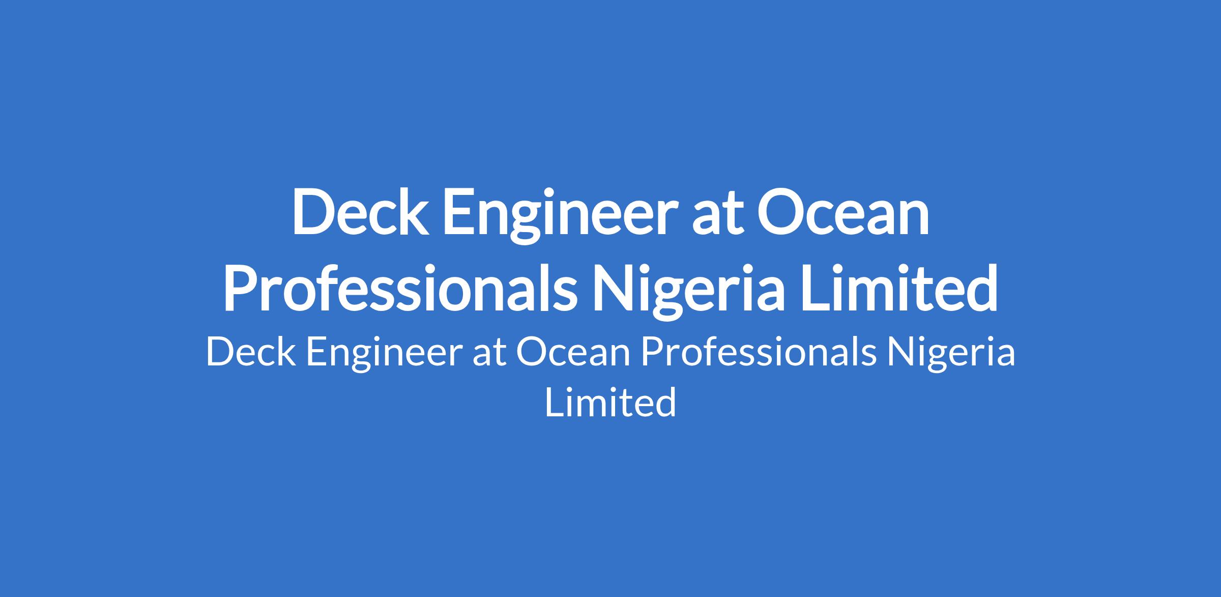 Deck Engineer at Ocean Professionals Nigeria Limited
