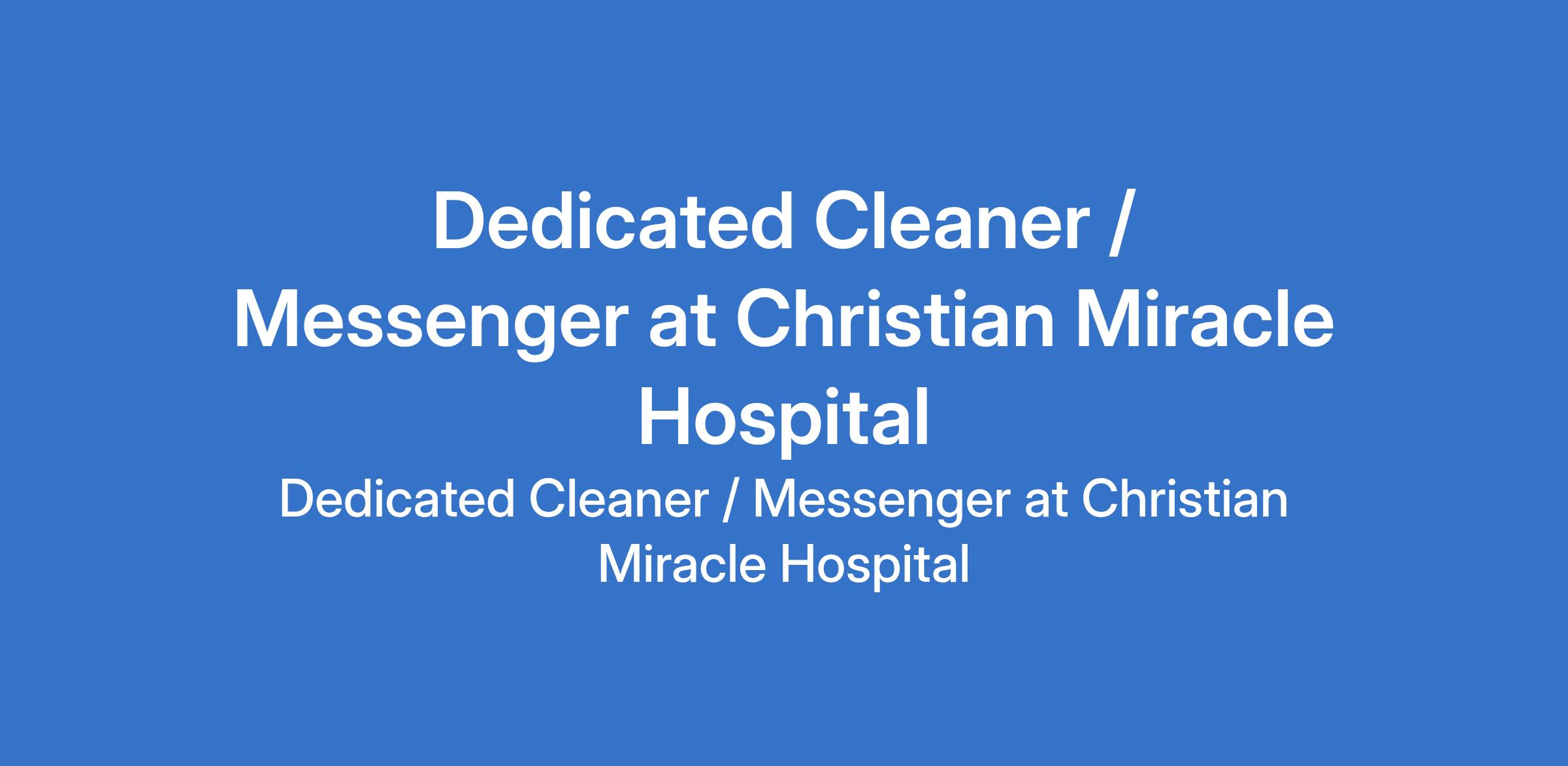 Christian Miracle Hospital is recruiting to fill the position of: Dedicated Cleaner / Messenger. The position is located in Enugu State. Interested candidates should possess minimum of a secondary school education (SSCE or equivalent) with basic training in cleaning techniques and infection control (on-the-job training provided).