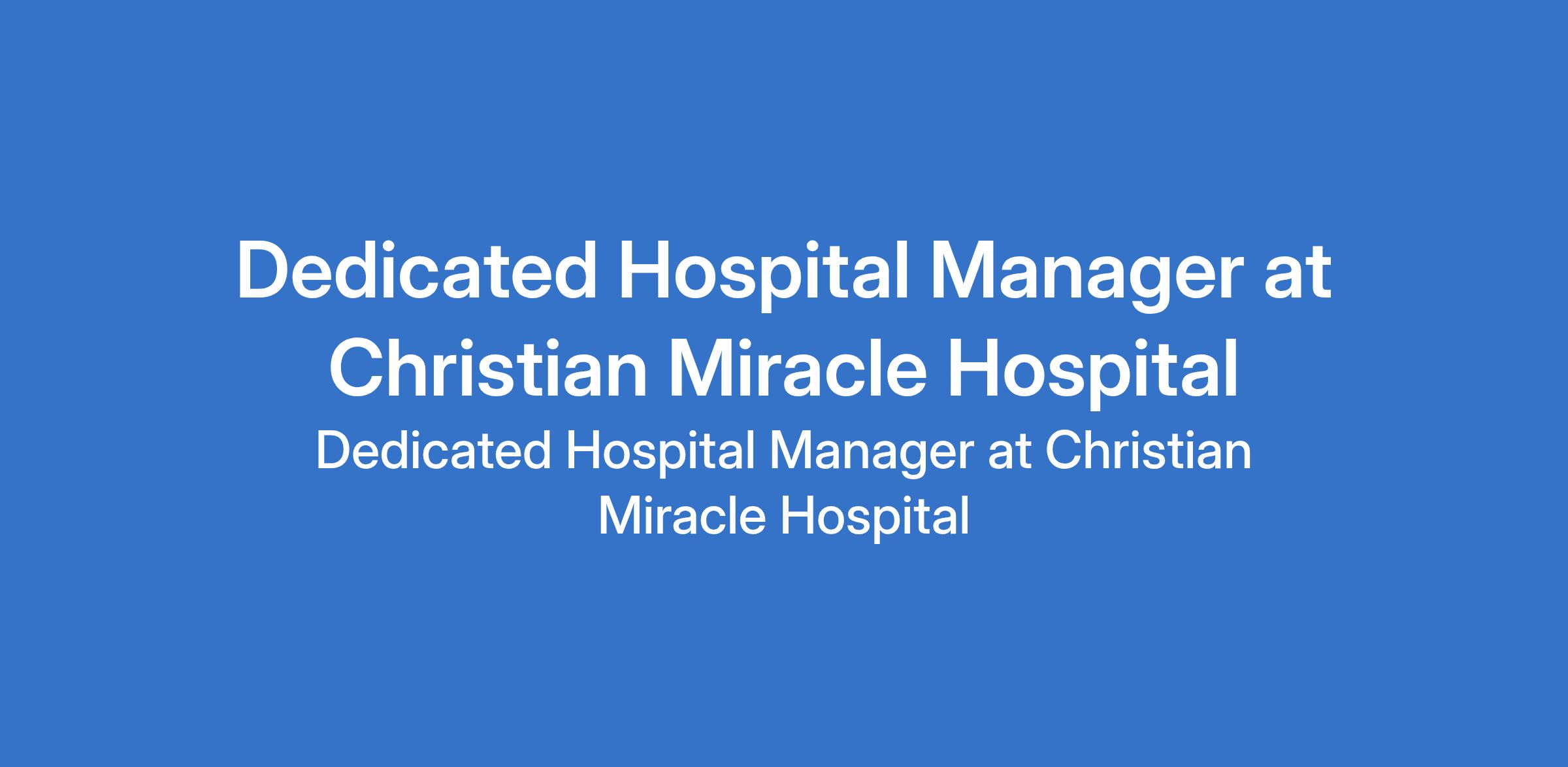 Christian Miracle Hospital is recruiting to fill the position of: Dedicated Hospital Manager. The position is located in Enugu State. Interested candidates should possess a Bachelor's Degree in any field with a minimum of 2 years experience in management, business development, sales/marketing and/or healthcare leadership role.