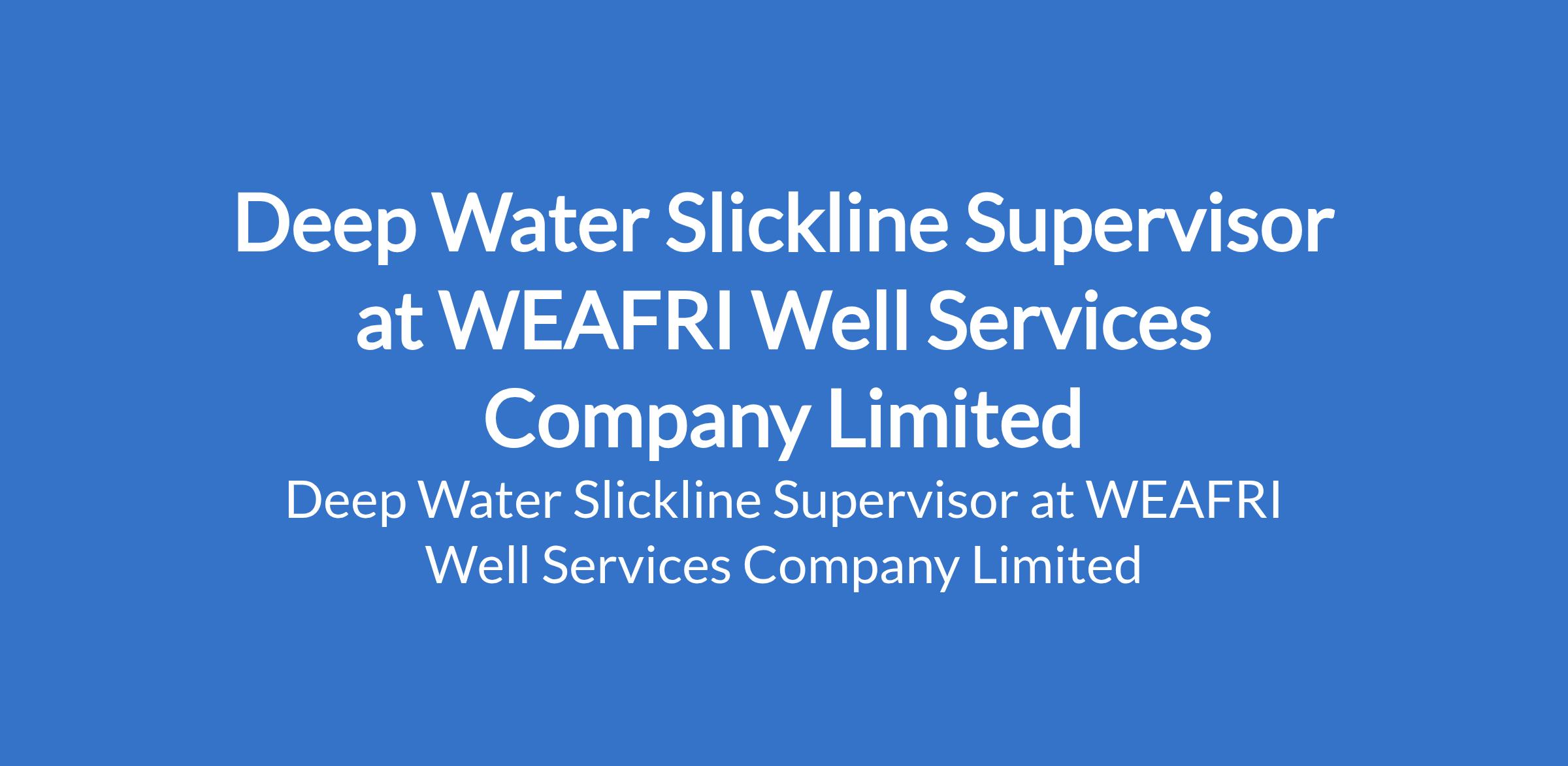 WEAFRI Well Services Company Limited is recruiting to fill the position of: Deep Water Slickline Supervisor. The position is located in Lagos State. Interested candidates should possess relevant qualifications with at least 5 years of working experience.
