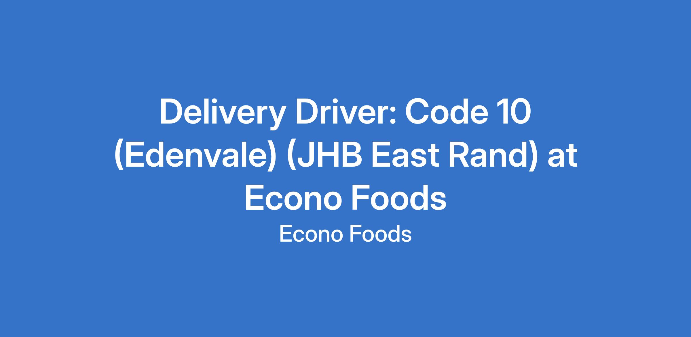 Delivery Driver: Code 10 (Edenvale) (JHB East Rand) at Econo Foods