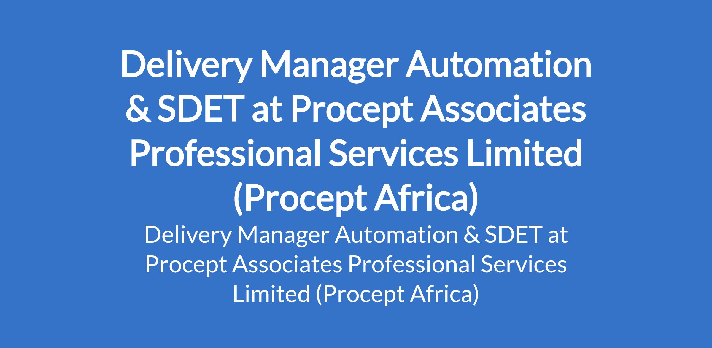 Procept Associates Professional Services Limited (Procept Africa) is recruiting to fill the position of: Delivery Manager Automation & SDET. The position is located in Igbobi, Lagos State. Interested candidates should possess a Bachelors Degree or HND qualification in Computer Science, Engineering, ICT, or a related field with 7 - 12 years of relevant experience in software testing and quality assurance, with 3 5 years in a leadership or delivery management role.