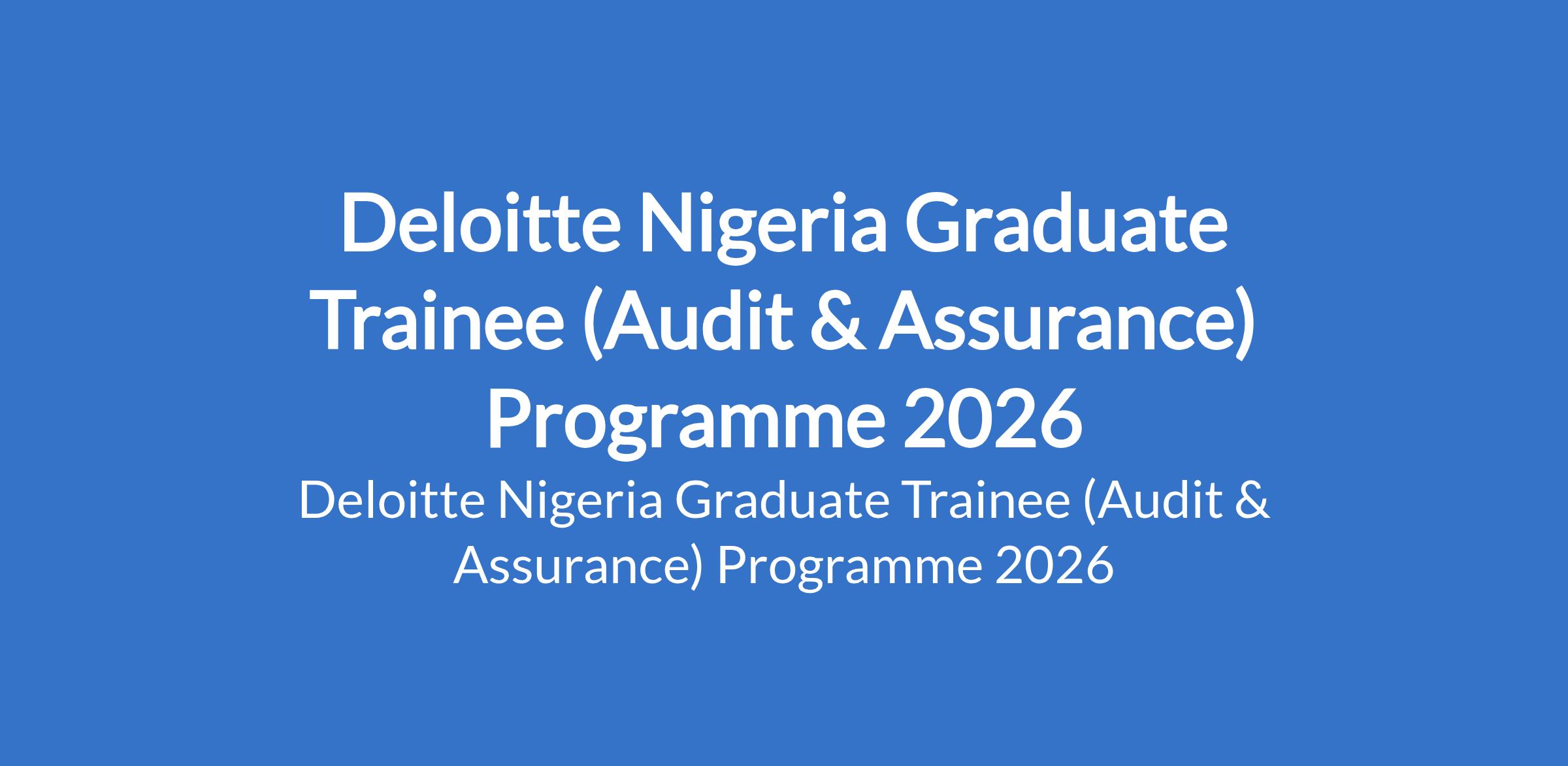 Deloitte Nigeria invites applications from suitable candidates for its Graduate Trainee (Audit & Assurance) Programme 2026. Interested candidates should have graduated from a recognized University / Polytechnic with a minimum of second class upper Degree / upper credit or its equivalent in any discipline with a minimum of a credit in five (5) Olevel subjects including Mathematics and English in one sitting only, have completed the National Youth Service Corps (NYSC) scheme, be maximum of 26 years old as at the date of application and not written the Deloitte aptitude test before.