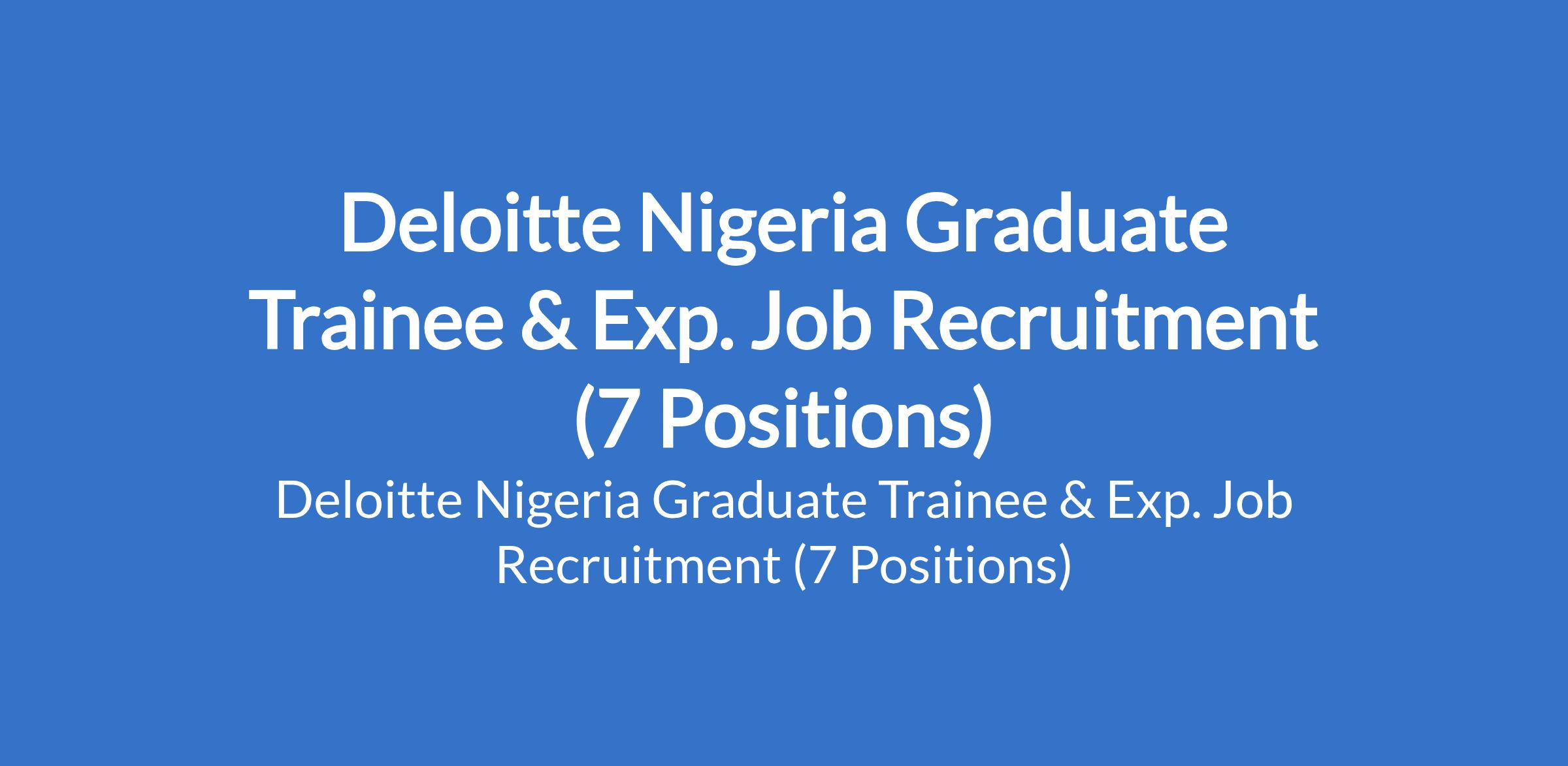 Deloitte Nigeria is recruiting suitable candidates to fill the following graduate trainee and experienced positions in Lagos State: Graduate Trainee (Tax and Legal Unit) Programme; Graduate Trainee (Audit & Assurance) Programme; Graduate Trainee (Consulting) Programme; Direct Sales Associate, Consultant, Culture and Change Management; Business Readiness and Network; and Change Delivery Senior Manager.
