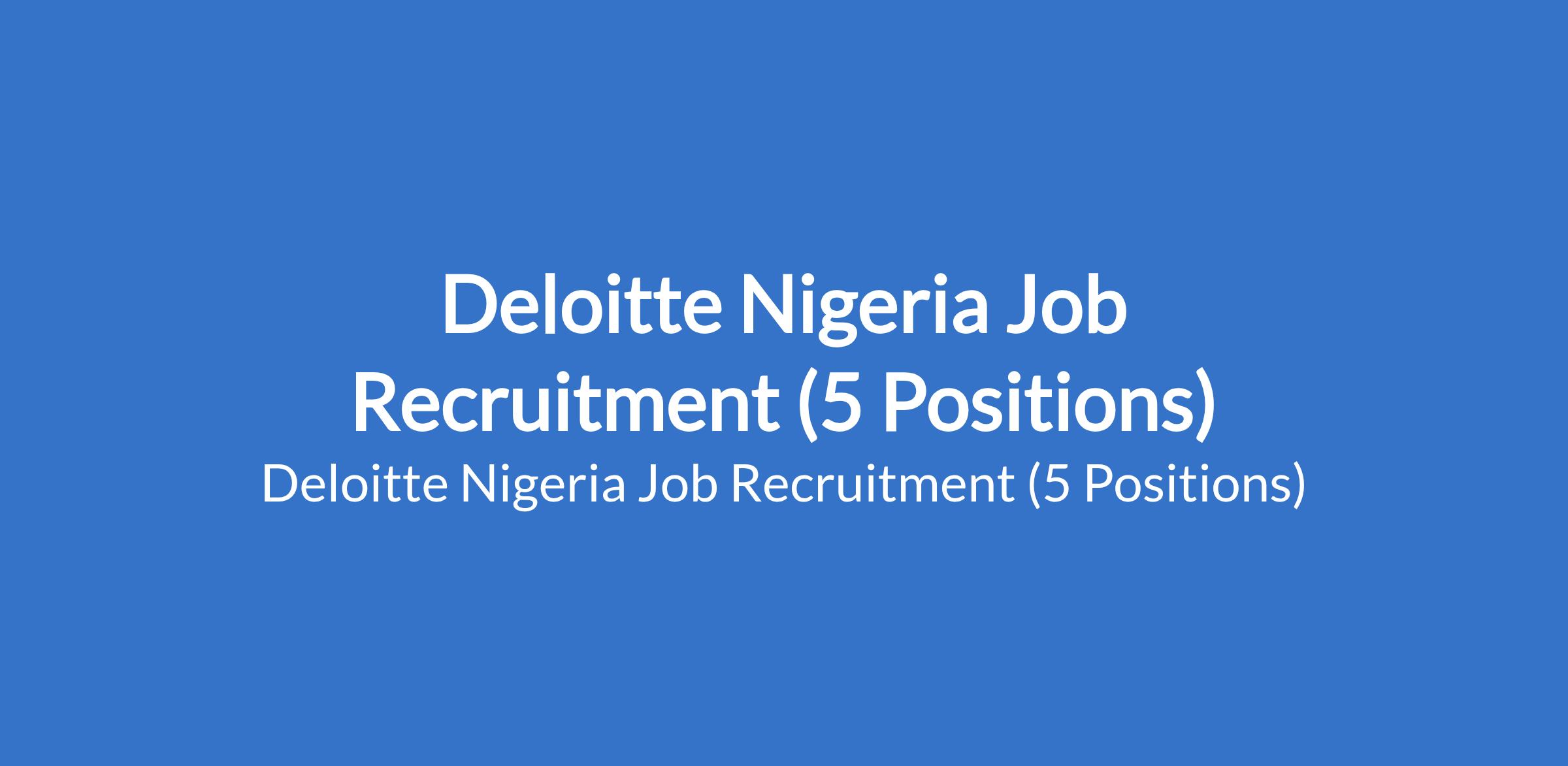 Deloitte Nigeria is recruiting suitably qualified candidates to fill the following positions in Lagos State: Direct Sales Associate, Consultant, Culture and Change Management; Business Readiness and Network; Change Delivery Senior Manager; and Consultant, Workforce Transformation.