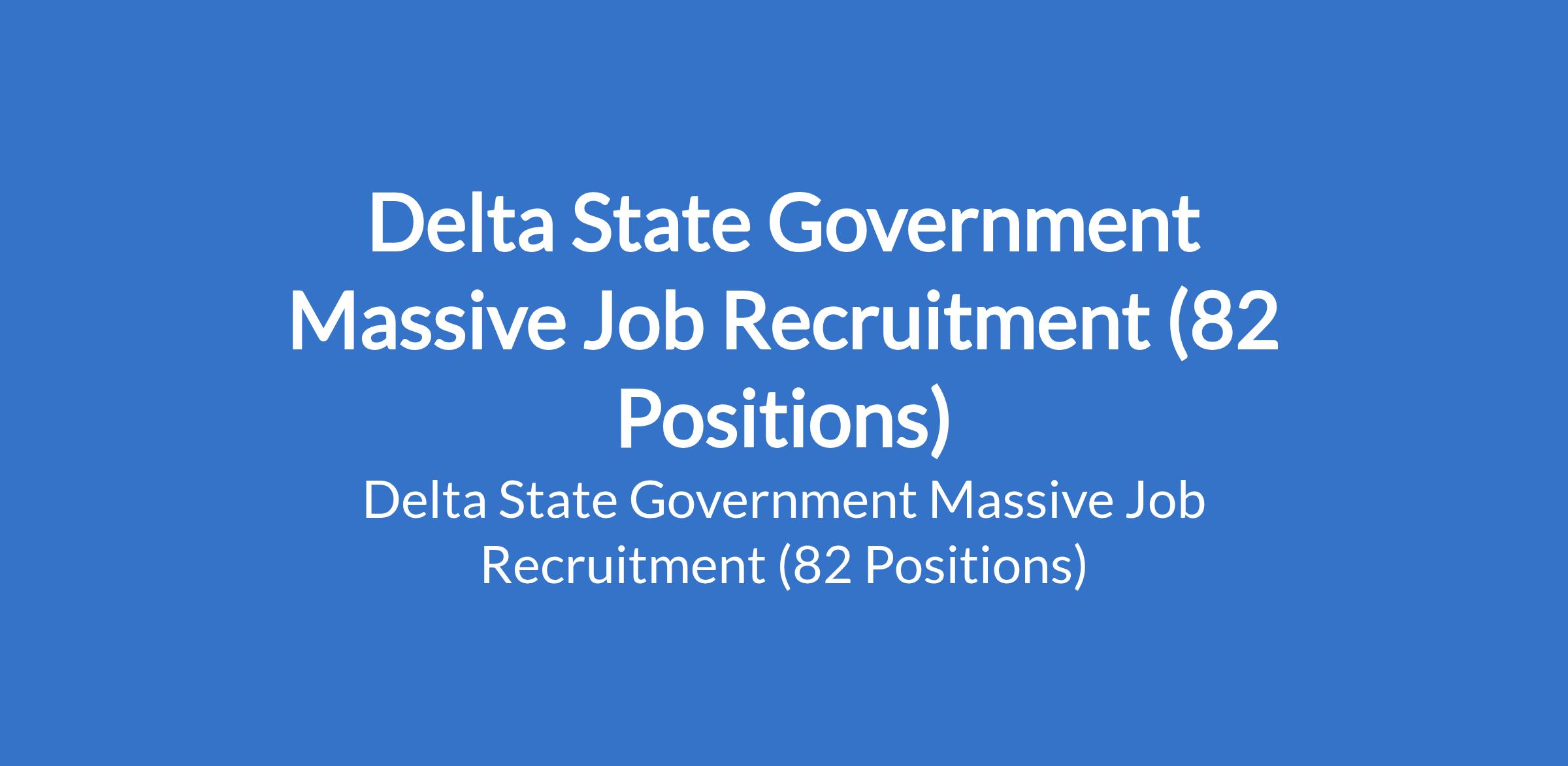Delta State Government, through the Ministry of Health, is inviting applications from suitable candidates to fill the following positions: Administrative Officer, Radiographer, Higher Executive Officer (Accounts), Higher Executive Officer (Audit), Higher Executive Officer (GD), Clerical Officer II, Optometrist, Optician, Public Health Officer, Health Education and Promotion Officer, Environmental Health Officer, Electrical Engineer, Engineer / Biomedical Engineer, Librarian, Health Senior Manager, Technology Officer, Procurement Principal Manager, Accountant, Executive Officer (GD), Auditor, Assistant Executive Officer, etc.