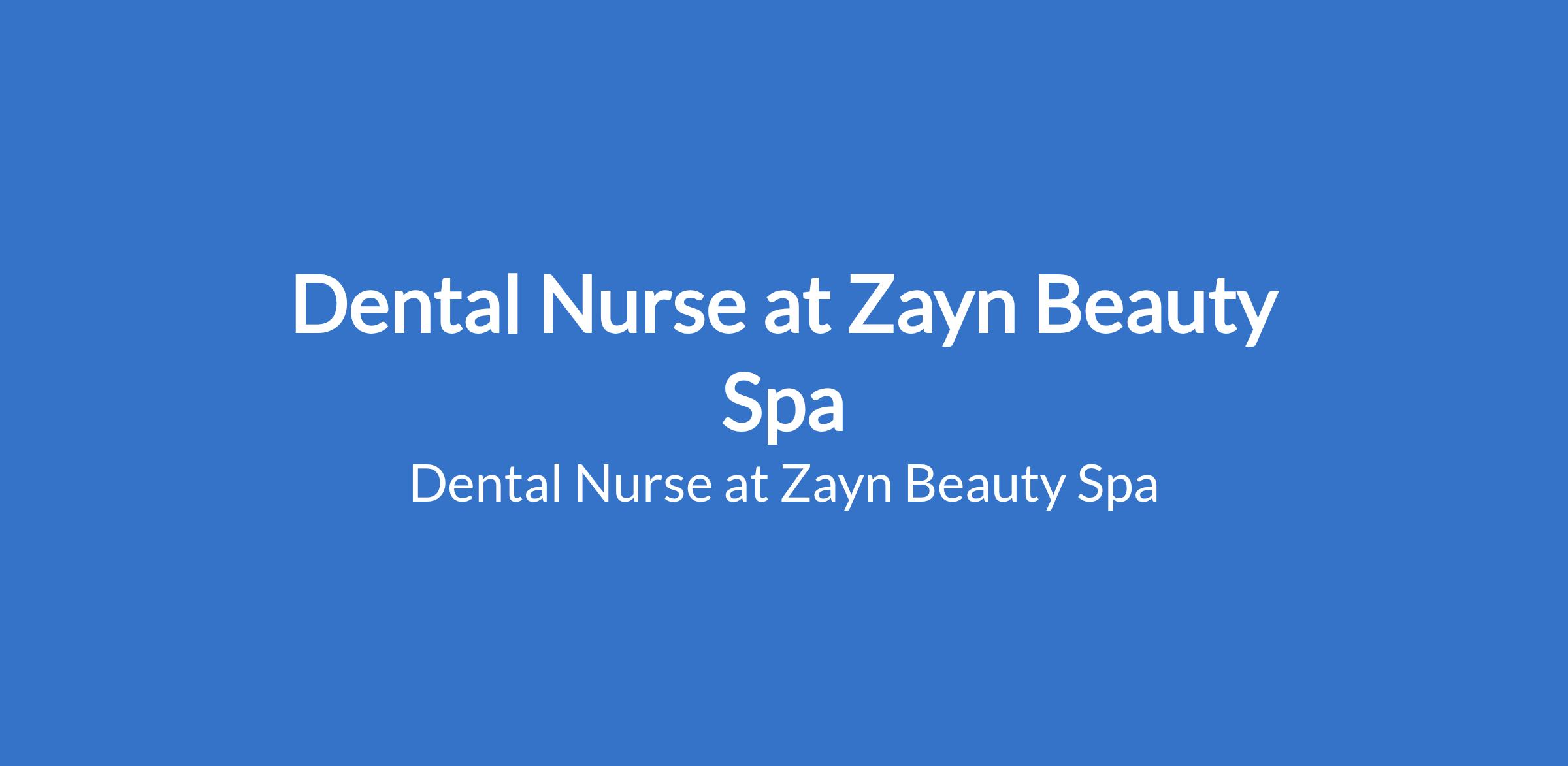 Dental Nurse at Zayn Beauty Spa