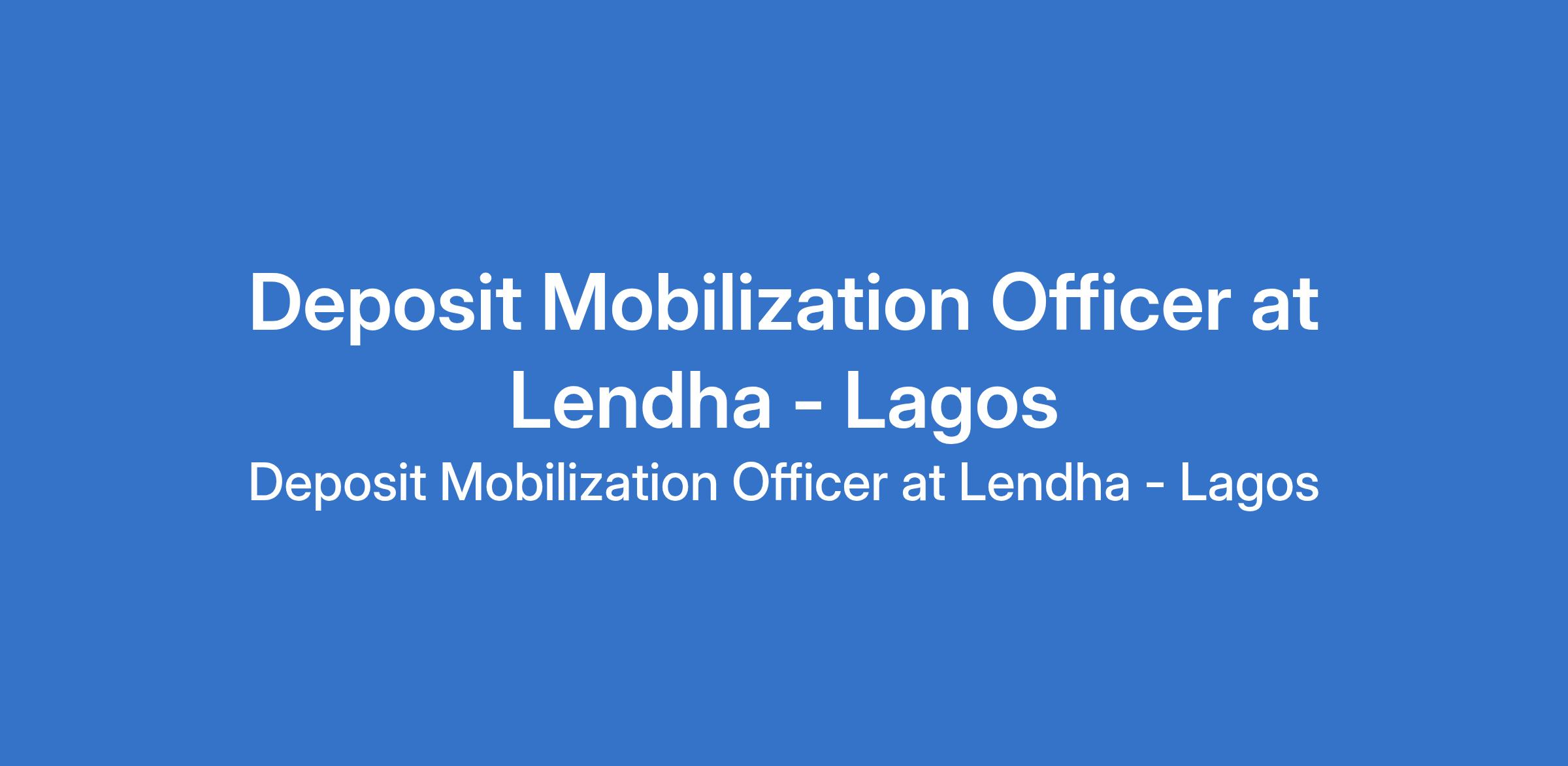 Lendha is recruiting to fill the position of: Deposit Mobilization Officer. The position is located in Surulere, Lagos State. Interested candidates should possess an ONDinBanking,Finance,Business Administration,Economics, or related fields 1-2 yearsinsales,customer service, orbanking.