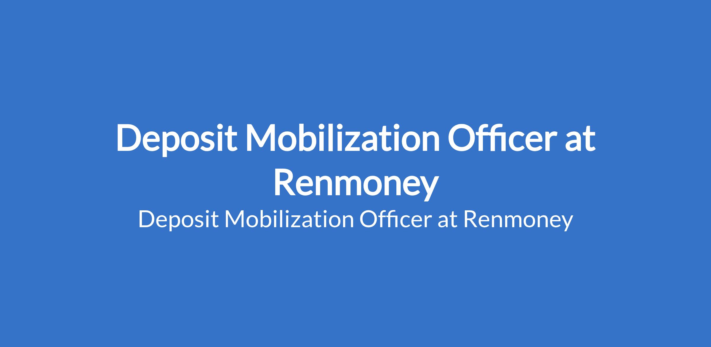 Renmoney is recruiting to fill the position of: Deposit Mobilization Officer. The position is located in Ikoyi, Lagos State. Interested candidates should possess a Bachelor's Degree in Business, Finance, Economics or related field with a minimum of 2 years experience in a similar role (Relationship Manager, Sales Officer, or Business Development Officer in a financial institution).