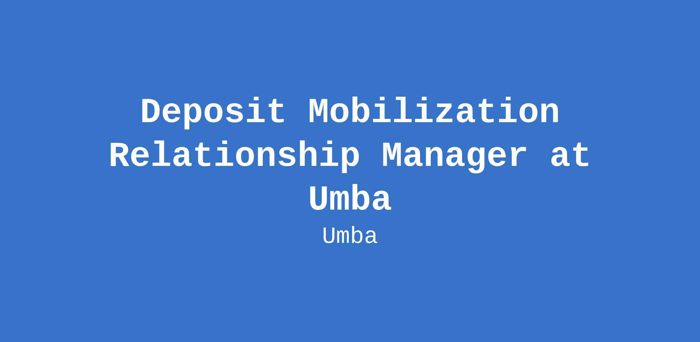 Deposit Mobilization Relationship Manager at Umba
