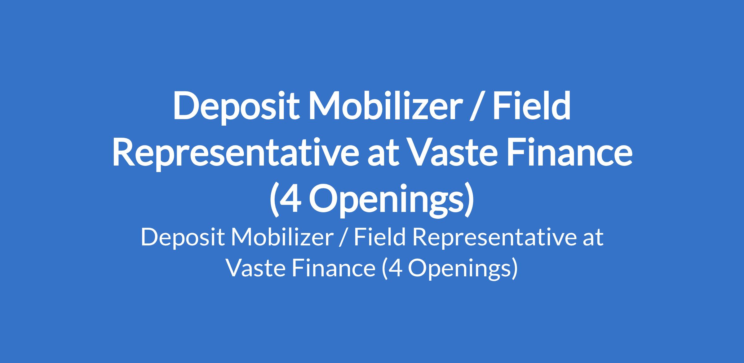 Deposit Mobilizer / Field Representative at Vaste Finance (4 Openings)