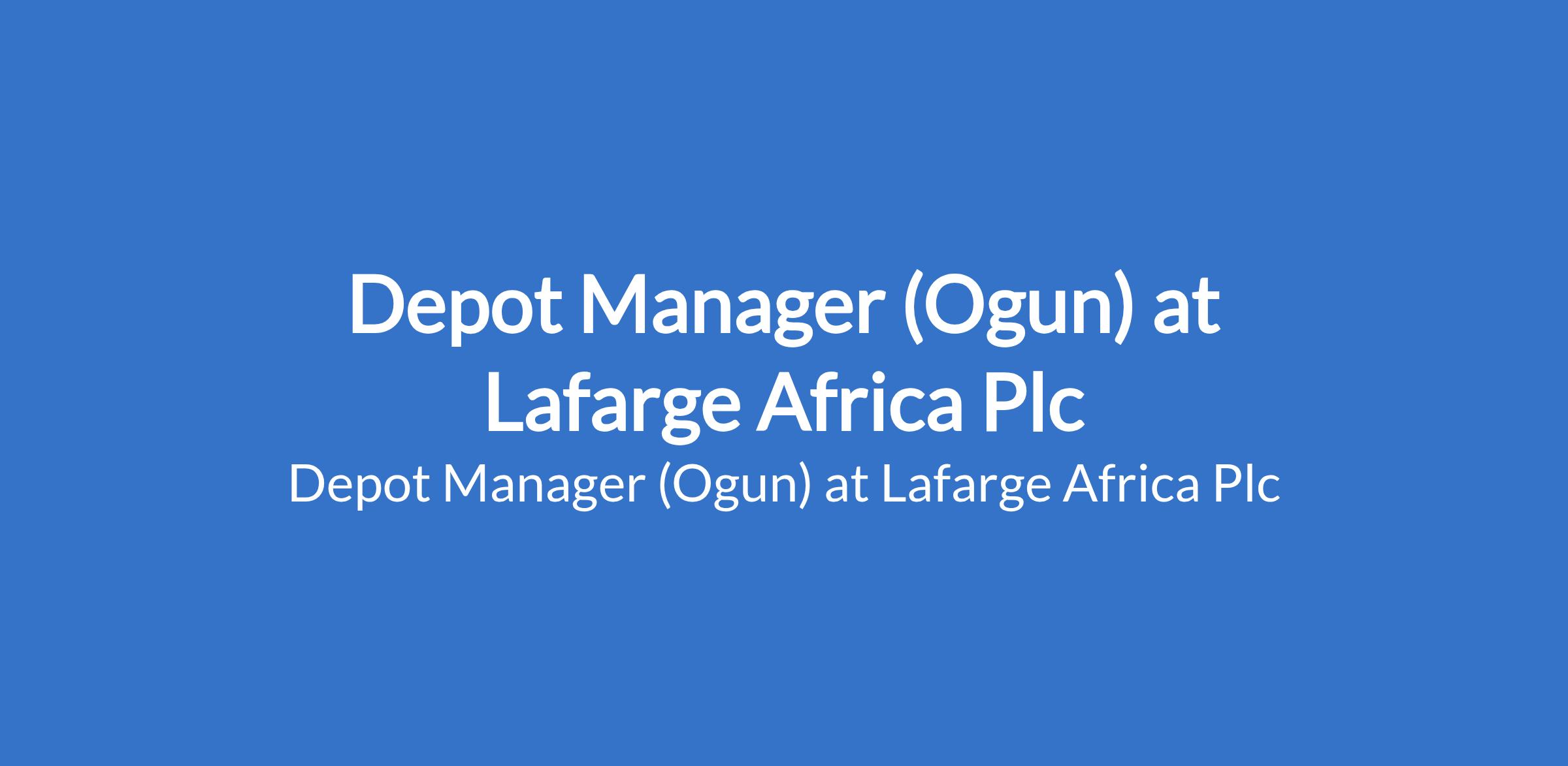 Lafarge Africa Plc is recruiting to fill the position of: Depot Manager. The position is located in Abeokuta, Ogun State. Interested candidates should possess a Bachelor's Degree in any discipline with at least 5 years experience in manufacturing, supply chain or logistics preferably a people manager