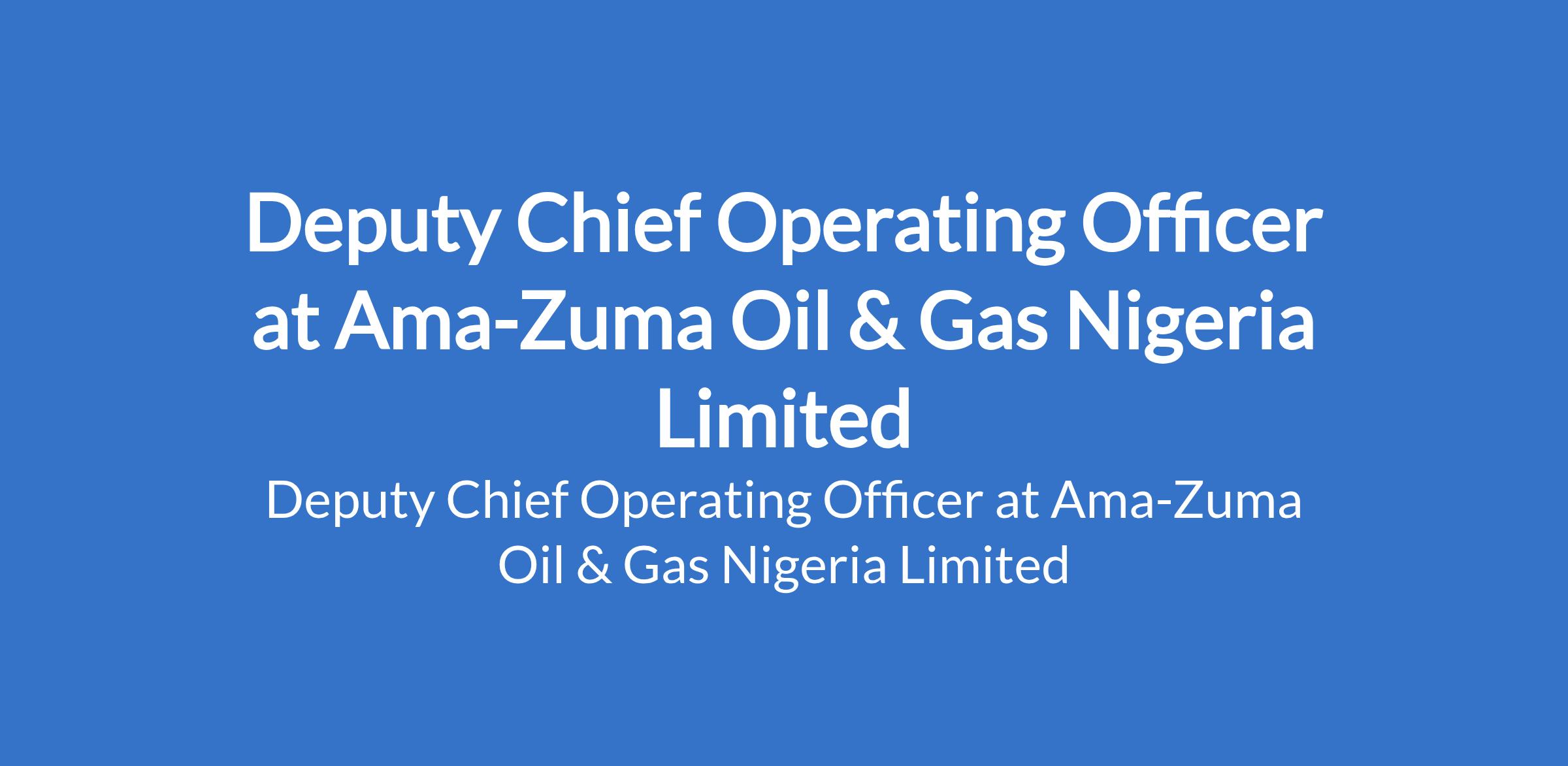 Ama-Zuma Oil & Gas Nigeria Limited is recruiting to fill the position of: Deputy Chief Operating Officer. The position is located in Abule-Egba, Lagos State. Interested candidates should possess a Bachelor's Degree in Business Administration, Operations management, or a related field; MBA preferred, with 15+ years proven experience in Oil & Gas downstream and proven experience in senior leadership roles, with a focus on operations management.