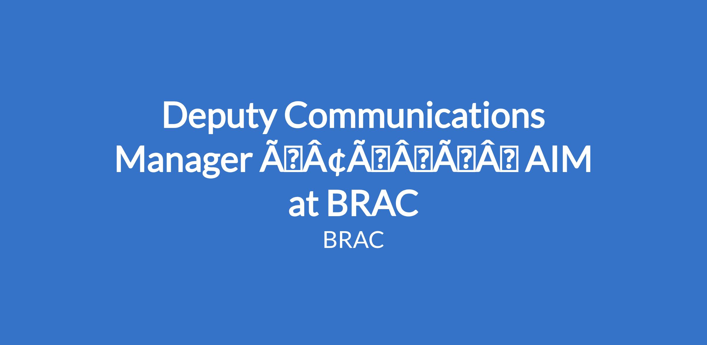 Deputy Communications Manager âÃÂàAIM at BRAC