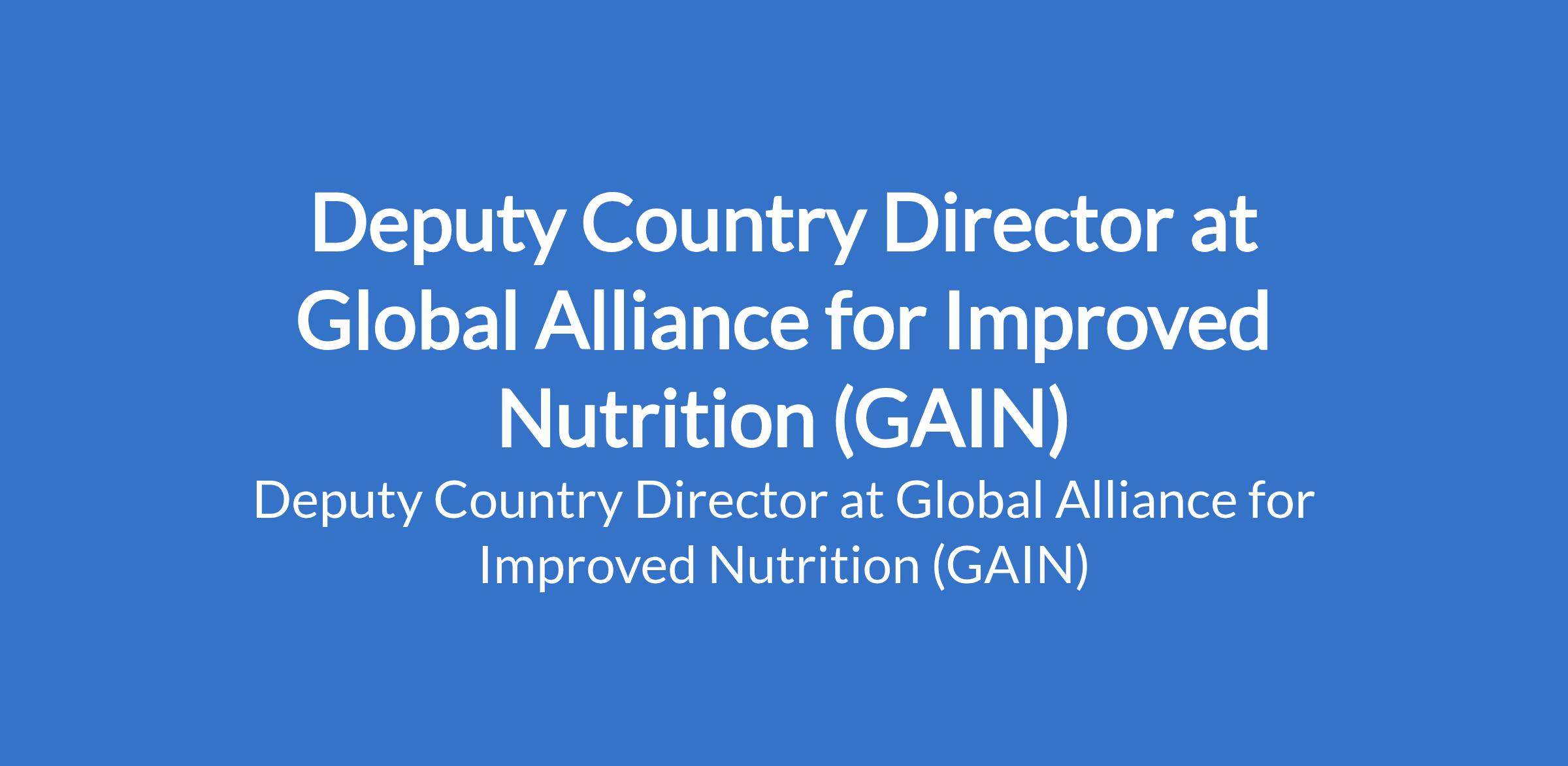 Global Alliance for Improved Nutrition (GAIN) is recruiting to fill the position of: Deputy Country Director. The position is located in Abuja. Interested candidates should possess a Master's Degree level preferably in Nutrition, Food Science/Technology, Agriculture, Public Health, or Development.