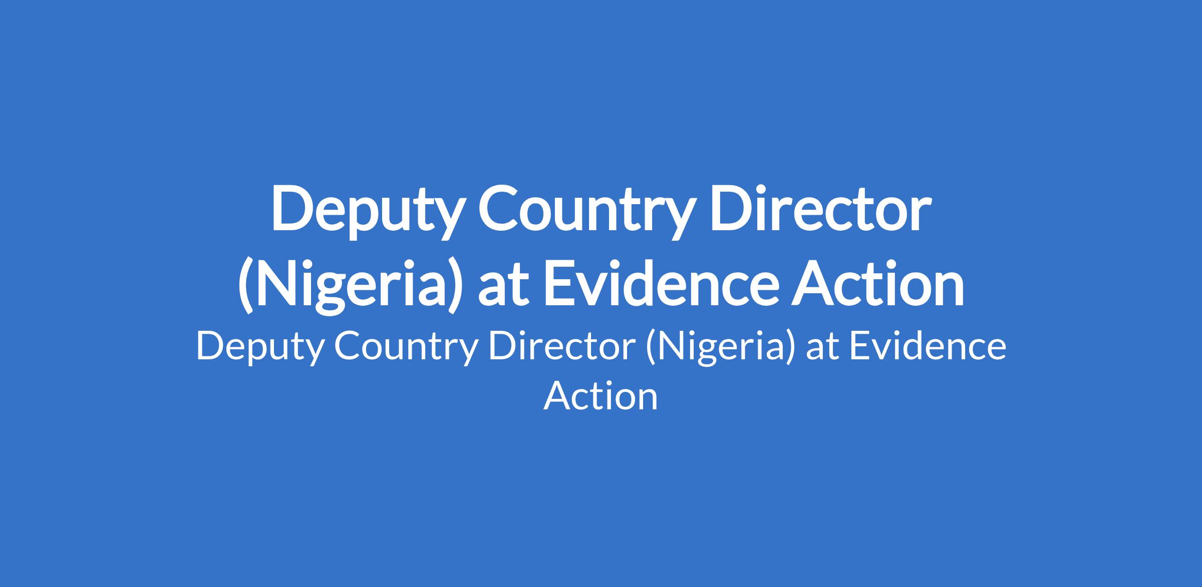 Evidence Action is recruiting to fill the position of: Deputy Country Director (Nigeria). The position is located in Abuja (FCT). Interested candidates should possess an Advanced Degree in Public Health, Health Management, Social Sciences, Development Studies, or a related field with at least 7 years of progressively responsible experience in program management within international development or public health, including at least 3 years in a senior leadership role.
