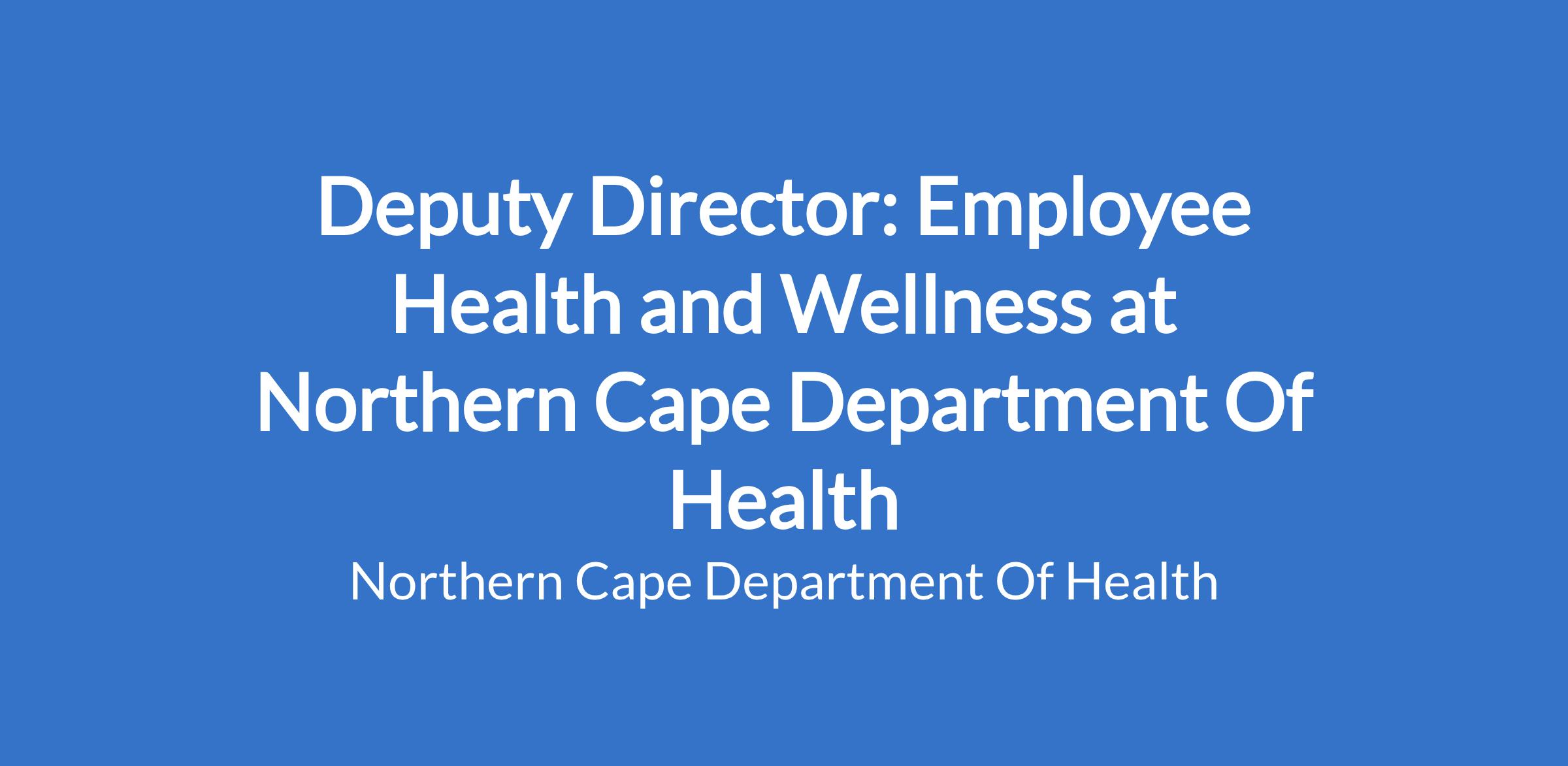 Five years' working experience in an EHW environment in the public sector of which three years must be at supervisory level. Registration with a Professional Body. Ability to manage highly confidential information. Relevant Employee Health and Wellness programme training.