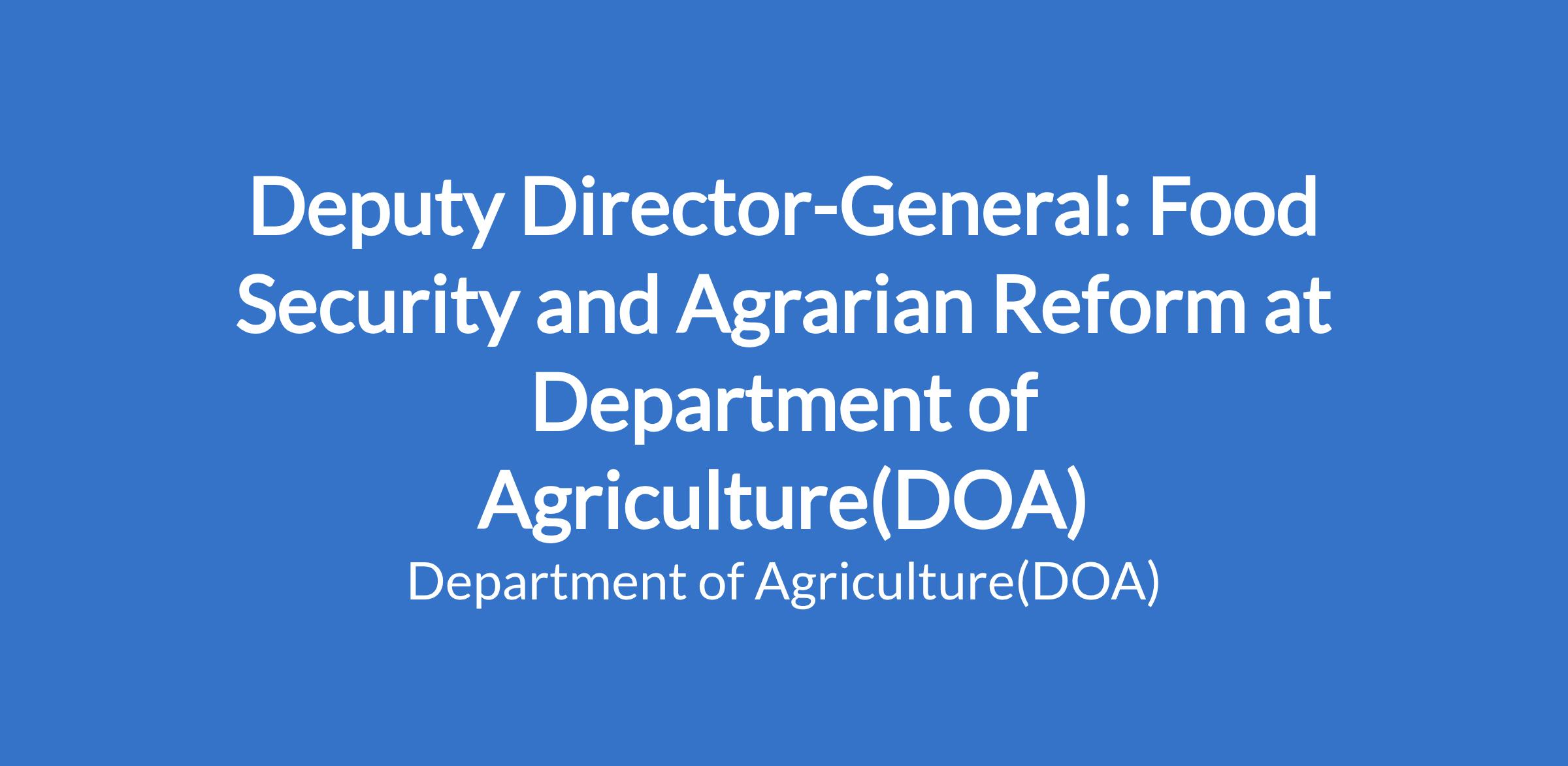 Oversee partnerships with other national and international stakeholders involved in the food security initiatives. Develop and provide strategic support to Land Reform beneficiaries. Develop norms and standards to guide support on land reform and other land beneficiaries. Provide Strategic support on land reform farms value chain. Coordinate land development support on acquired land. Facilitate the provision of the Department of Agriculture (DoA) education and Training in support of sustainable growth and equitable participation in the sector. Facilitate and support education and training skills in the Sector.