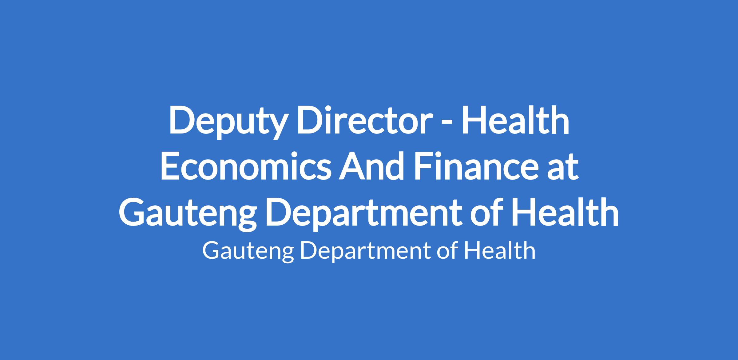 Five (5) years relevant experience in health economics or financial management and policy development of which three (3) years must be functional experience at a junior management level (Assistant Director level 9) preferably in a Health Economics or Financial management environment.