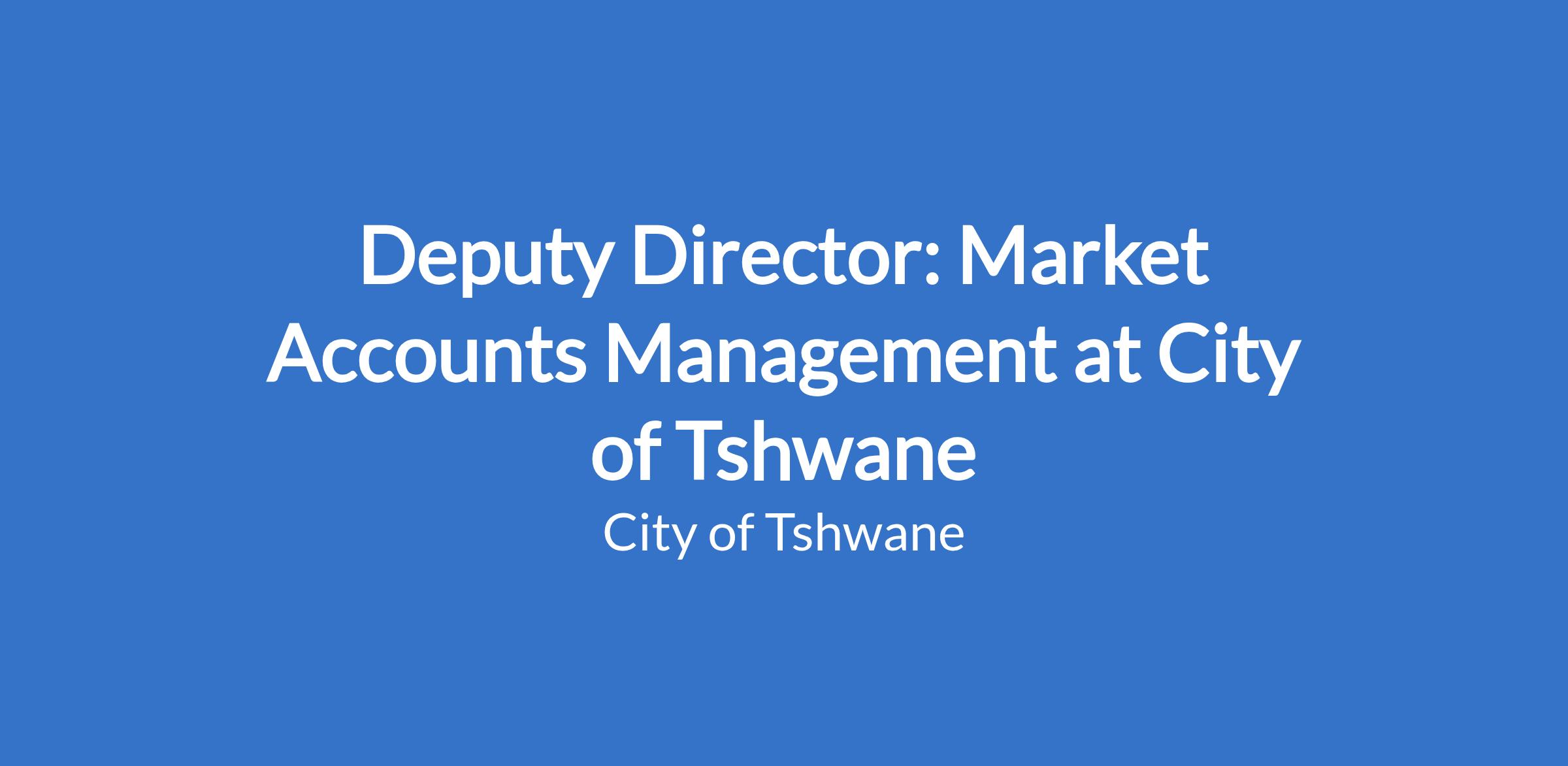 Deputy Director: Market Accounts Management at City of Tshwane