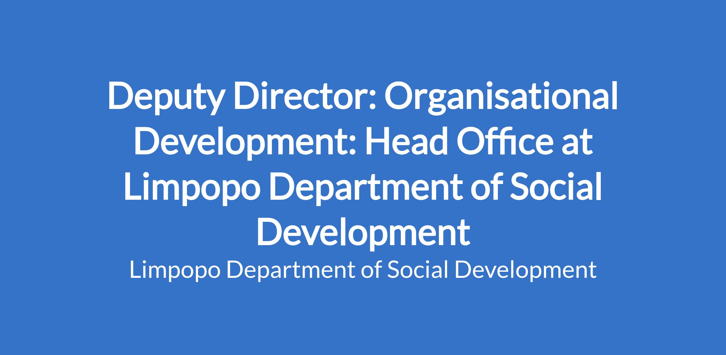Develop and maintain efficient and effective Organisational Structure. Coordinate the development of Standard Operating Procedures. Develop business process re-engineering strategies to enhance efficiency. Facilitate the development and review of Job Description s. Coordinate job evaluation processes. Conduct assessments to measure and improve organisational productivity across all levels of the department. Conduct Organisational Functionality Assessment. Facilitate change management initiatives. Compile comprehensive reports on the progress of organisational development initiatives and assess their impact on the department's goals.