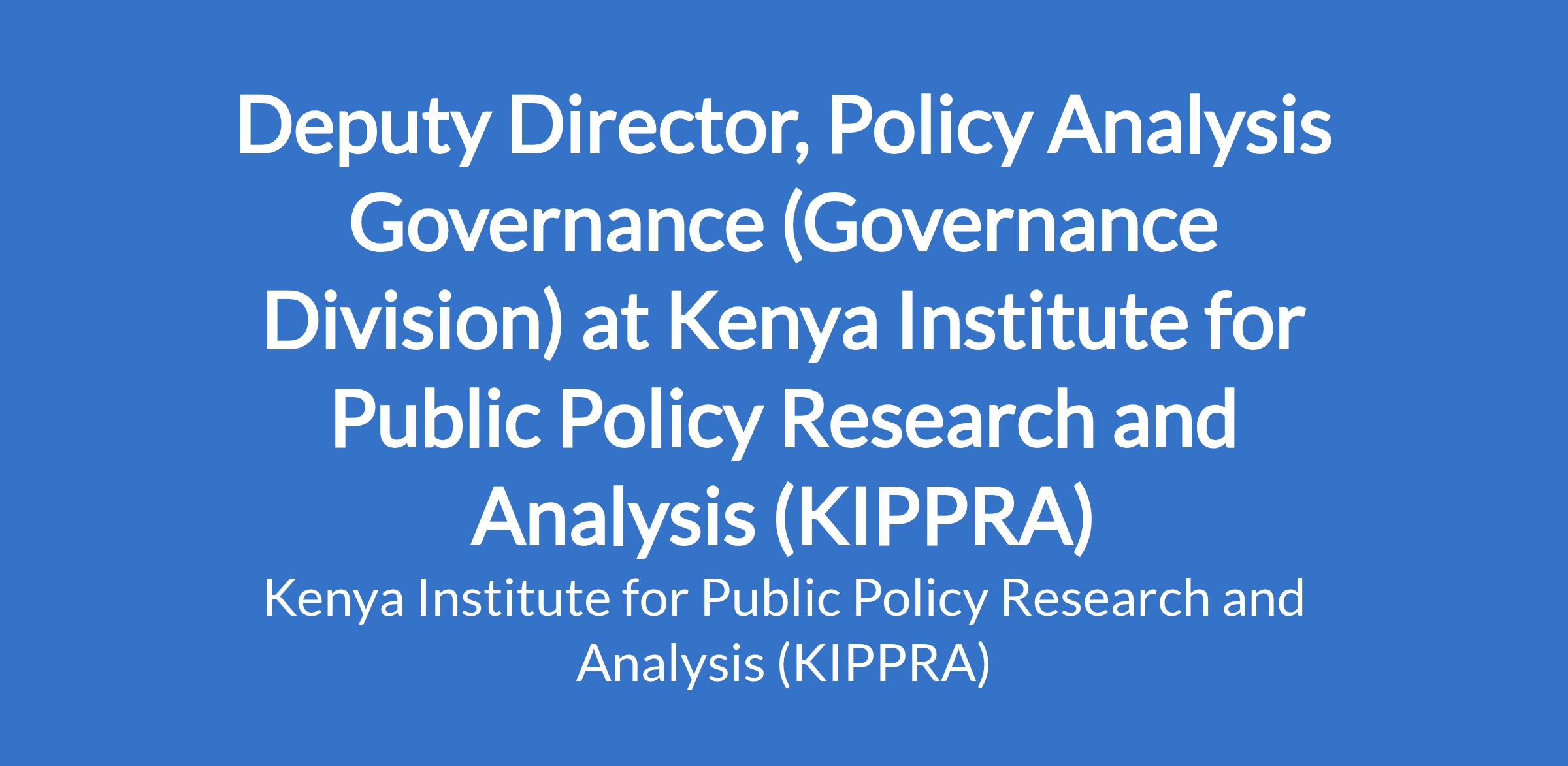Deputy Director, Policy Analysis Governance (Governance Division) at Kenya Institute for Public Policy Research and Analysis (KIPPRA)