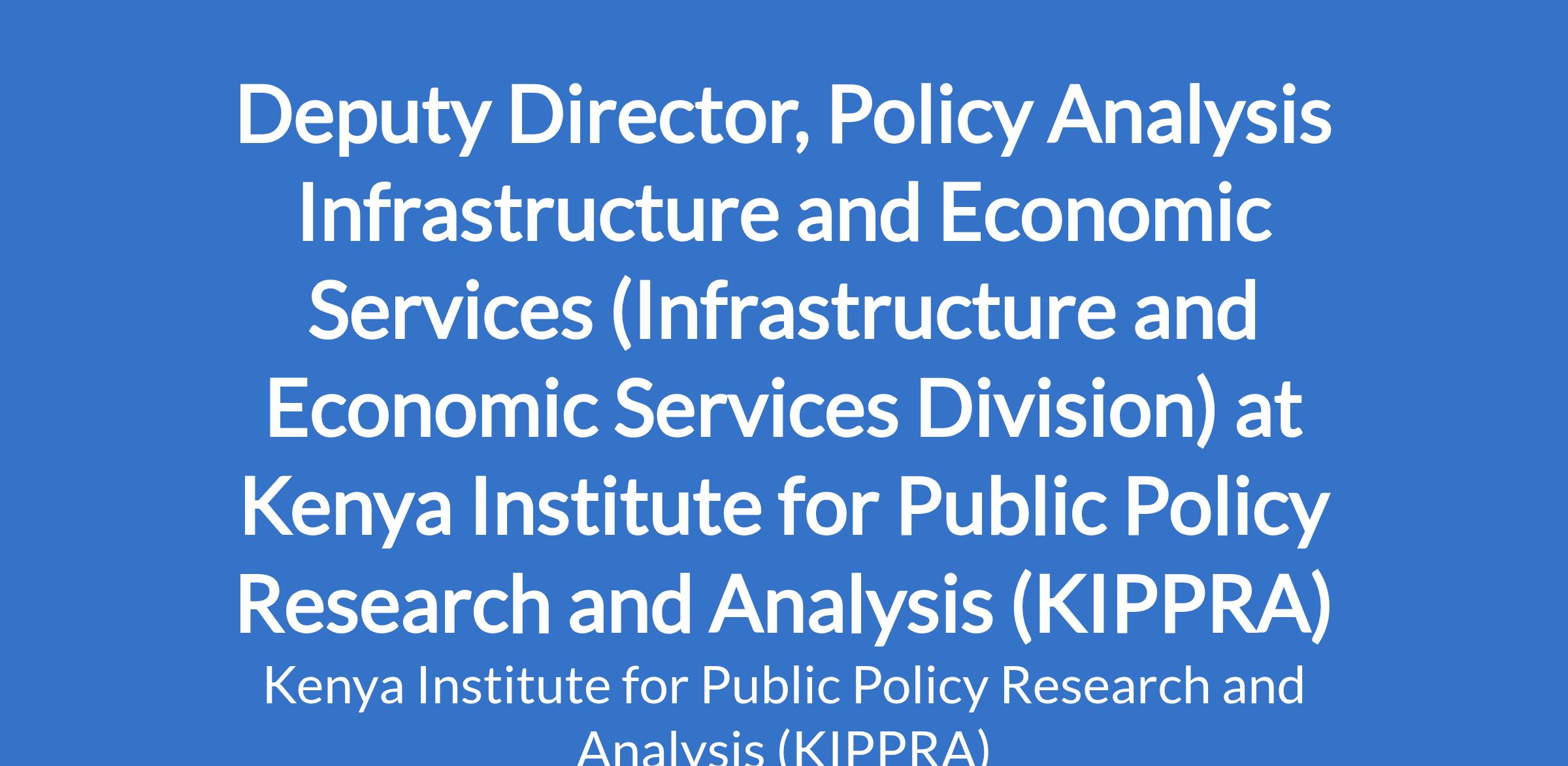 Deputy Director, Policy Analysis Infrastructure and Economic Services (Infrastructure and Economic Services Division) at Kenya Institute for Public Policy Research and Analysis (KIPPRA)