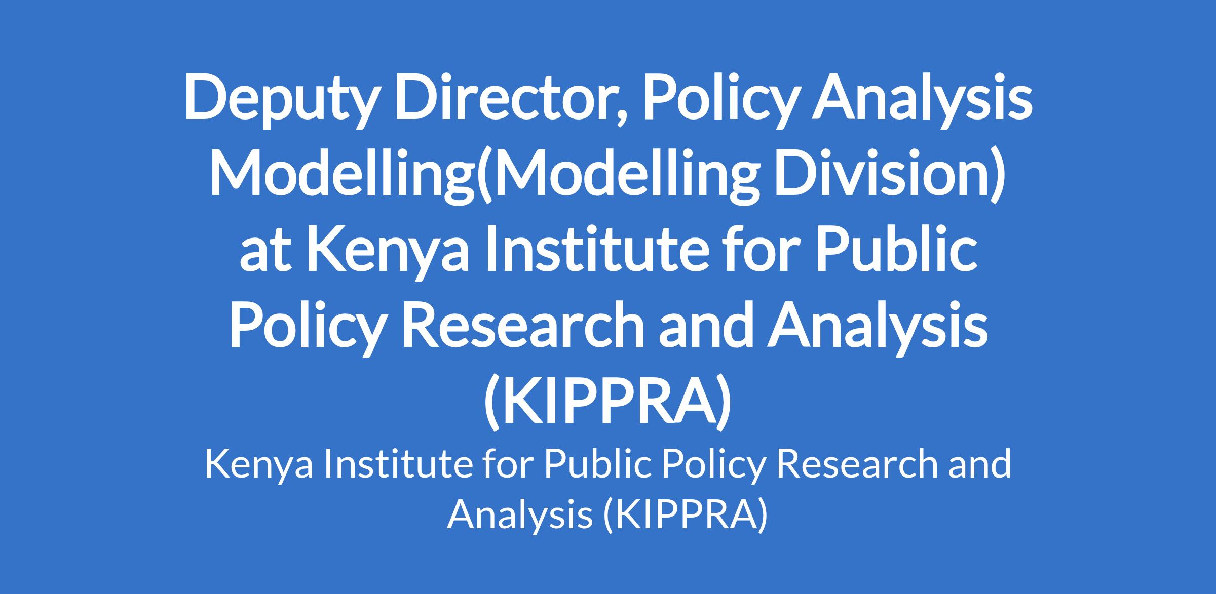 Deputy Director, Policy Analysis Modelling(Modelling Division) at Kenya Institute for Public Policy Research and Analysis (KIPPRA)