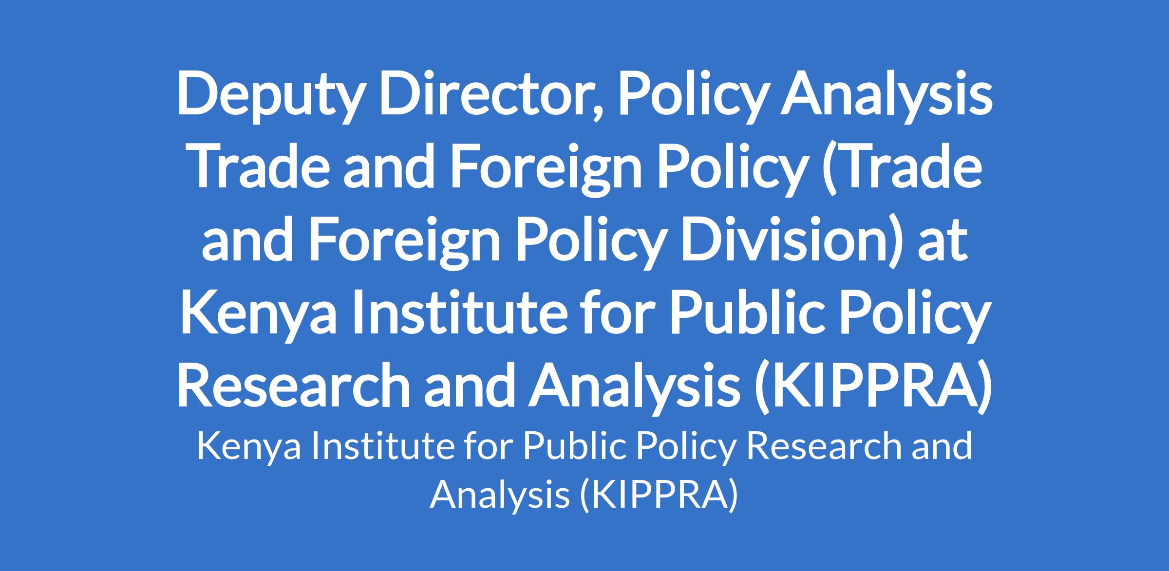 Deputy Director, Policy Analysis Trade and Foreign Policy (Trade and Foreign Policy Division) at Kenya Institute for Public Policy Research and Analysis (KIPPRA)