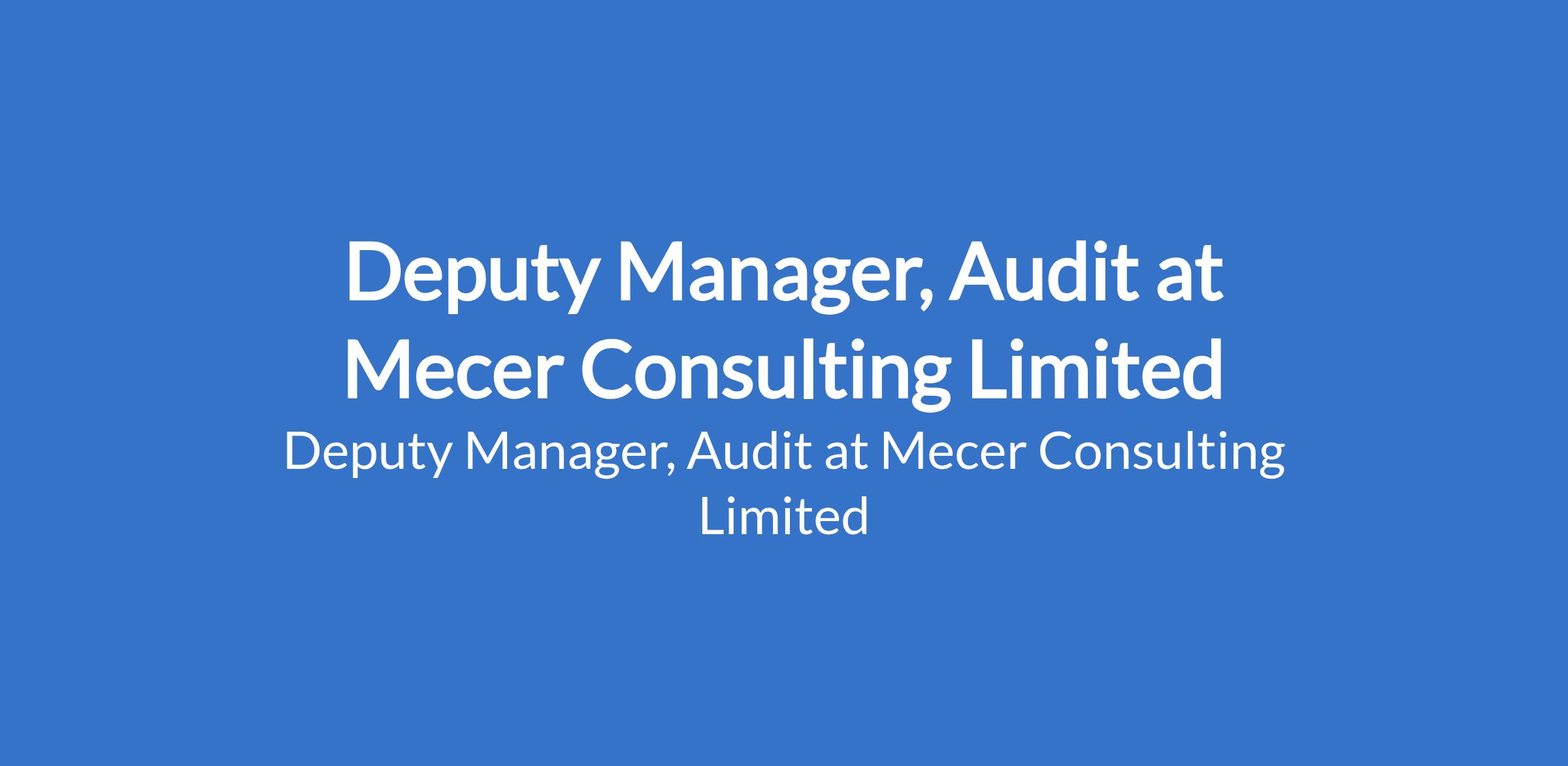 Mecer Consulting Limited is recruiting to fill the position of: Deputy Manager, Audit. The position is located in Abuja (FCT). Interested candidates should possess a Bachelors Degree in Accounting, Finance, Economics, or a related discipline with 8 - 15 years progressive experience in internal audit, external audit, risk management, or internal control