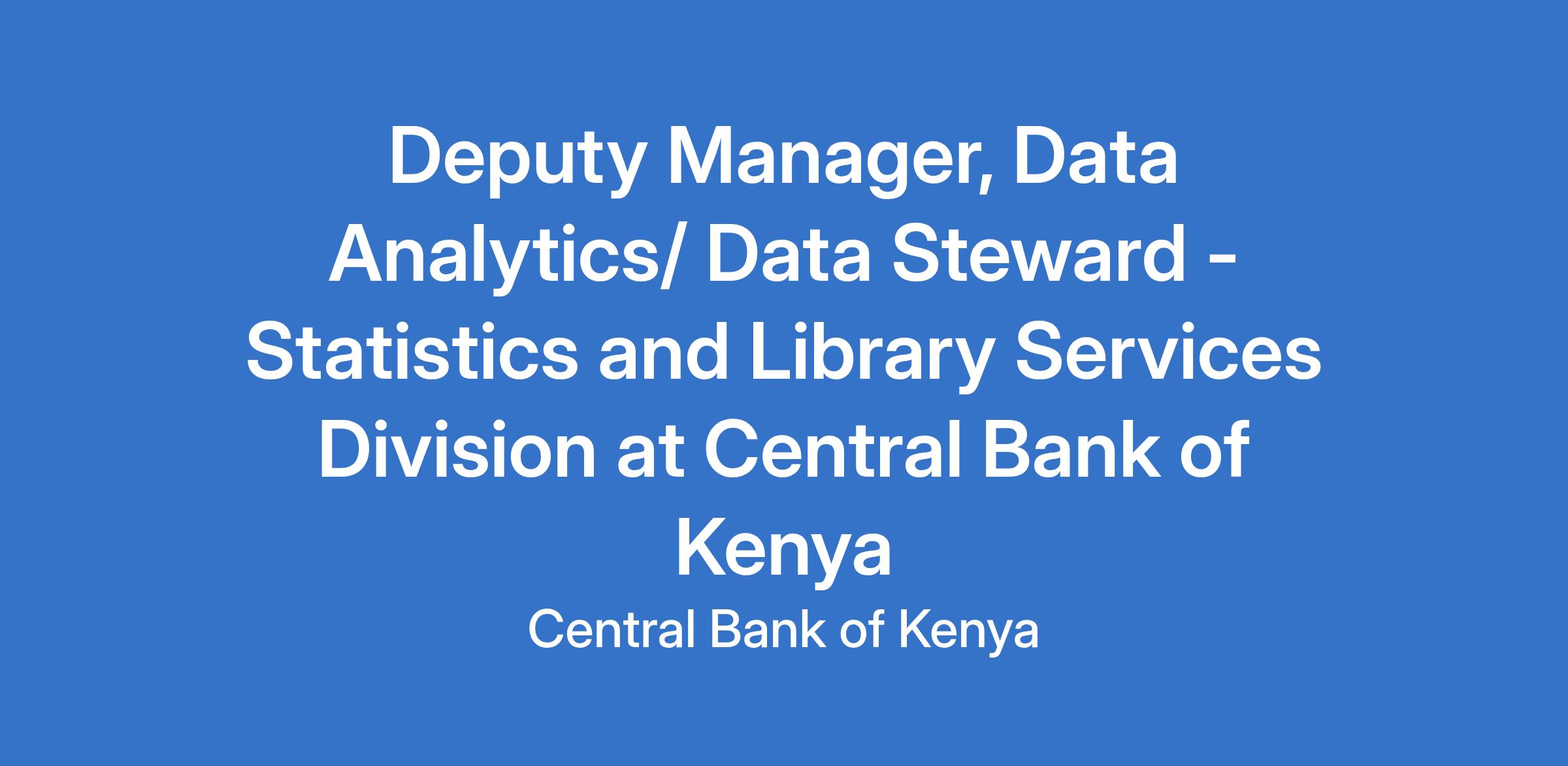 Deputy Manager, Data Analytics/ Data Steward - Statistics and Library Services Division at Central Bank of Kenya