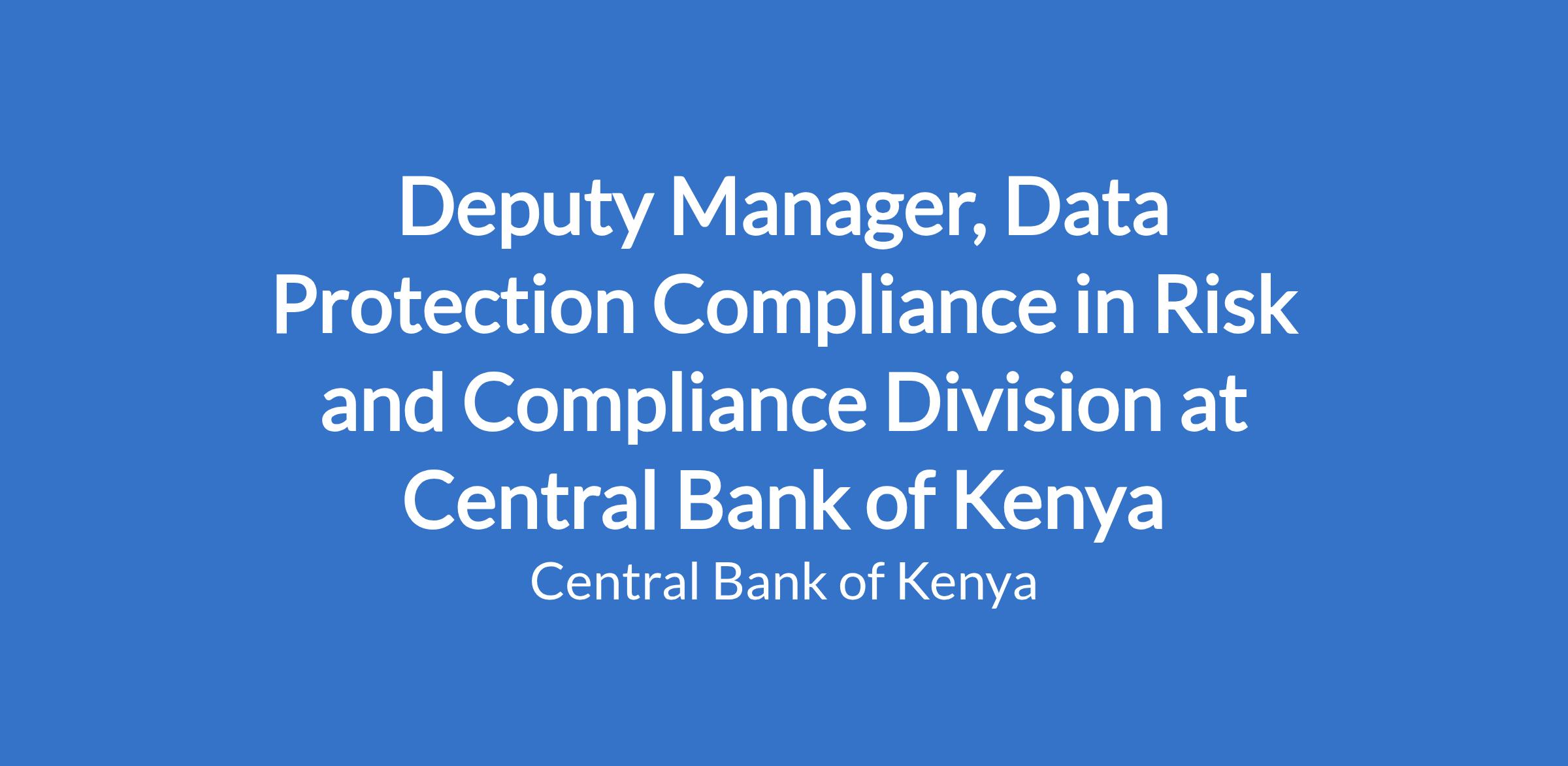 Deputy Manager, Data Protection Compliance in Risk and Compliance Division at Central Bank of Kenya