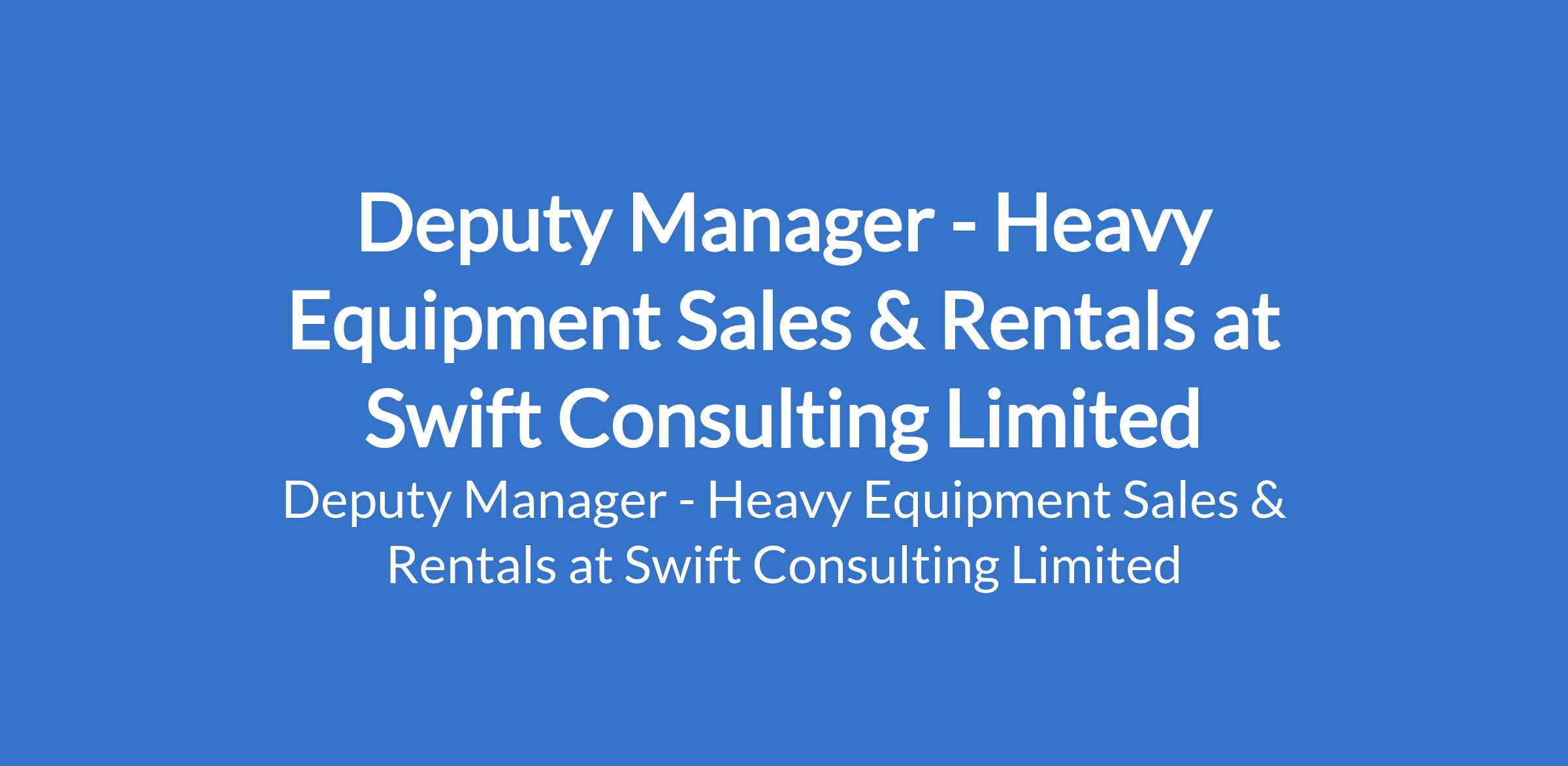 Swift Consulting Limited - Our client is recruiting to fill the position of: Deputy Manager - Heavy Equipment Sales & Rentals. The position is located in Apapa, Lagos State. Salary: N600,000 - N1,000,000 / month. Interested candidates should possess a Bachelors Degree or HND in Engineering, Business Administration, or a related field with 5 8 years of experience in heavy equipment, machinery, construction equipment, or industrial equipment operations.