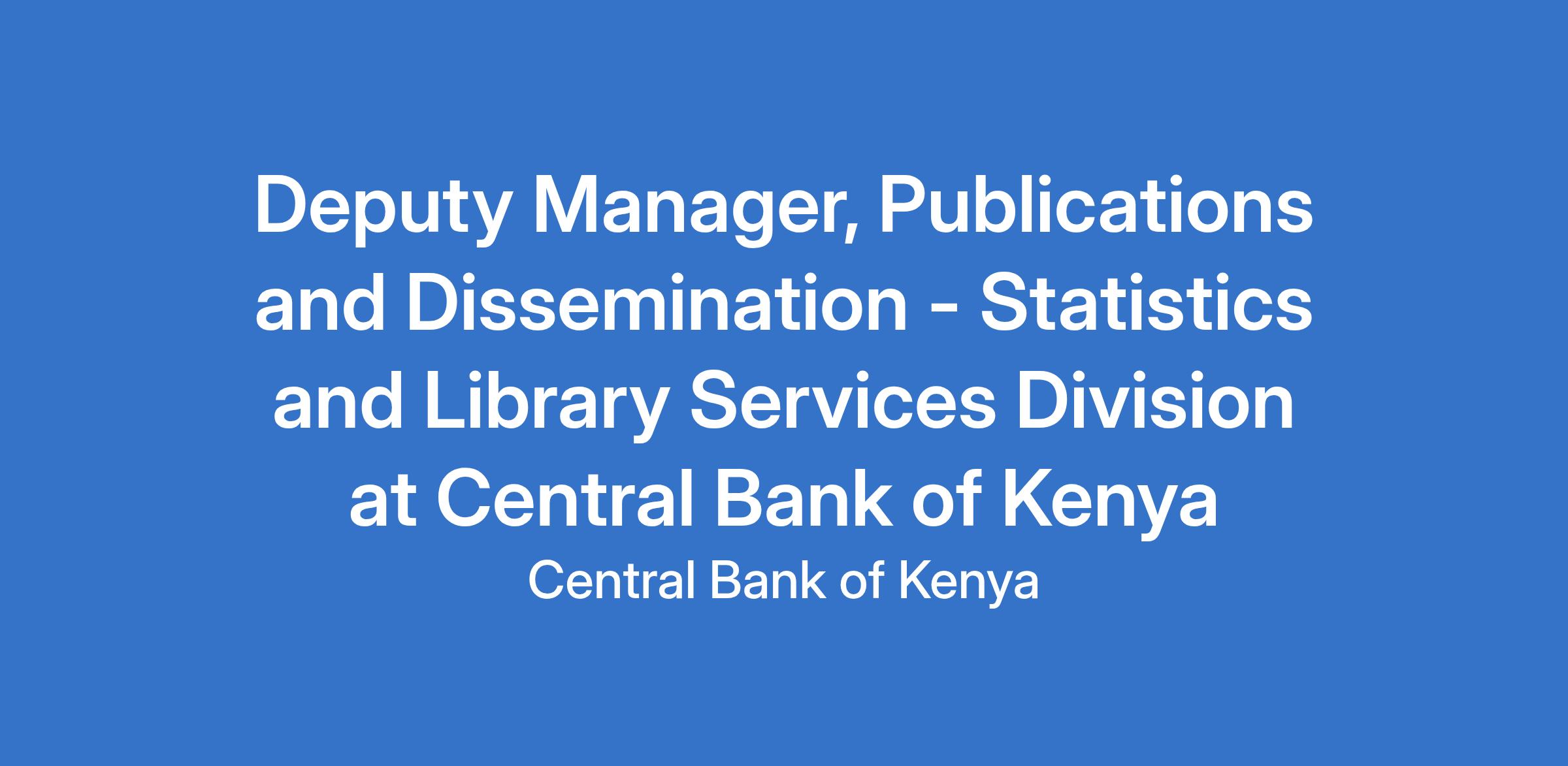 Deputy Manager, Publications and Dissemination - Statistics and Library Services Division at Central Bank of Kenya