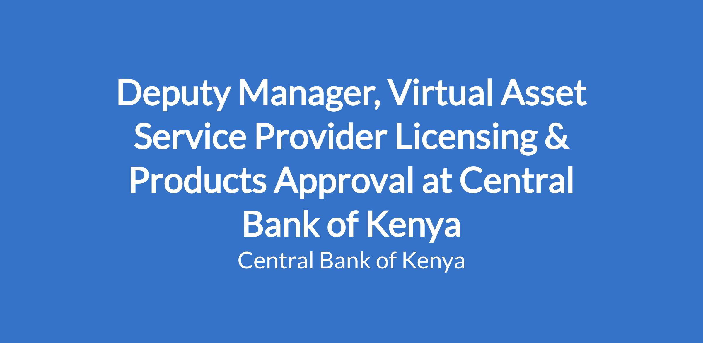 Deputy Manager, Virtual Asset Service Provider Licensing & Products Approval at Central Bank of Kenya