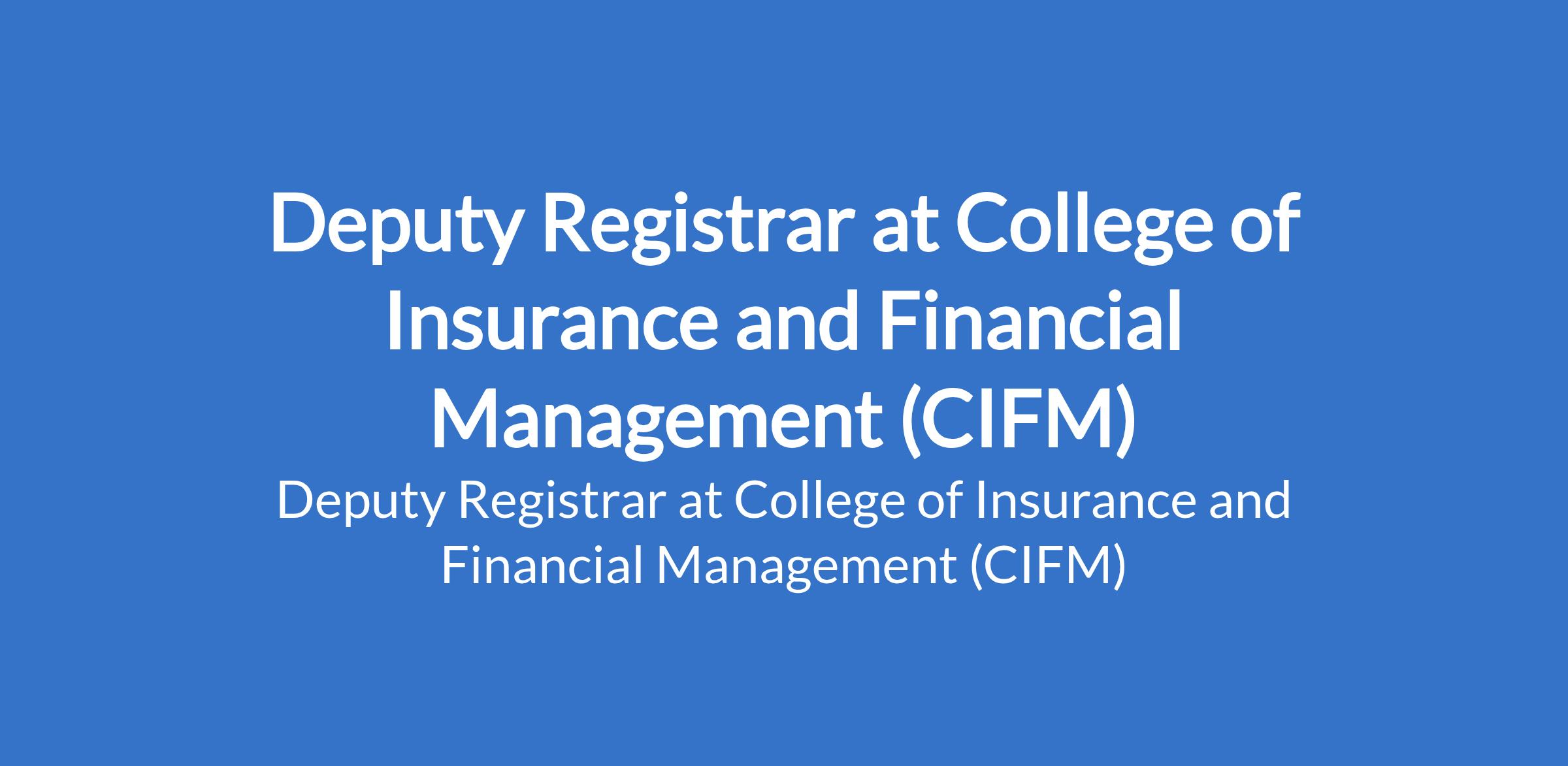 The College of Insurance and Financial Management (CIFM) is recruiting to fill the position of: Deputy Registrar. The position is Located in Lagos State. Interested candidates should possess a Masters Degree in Business, Insurance, Law, Finance or related fields with 1015 years working experience.