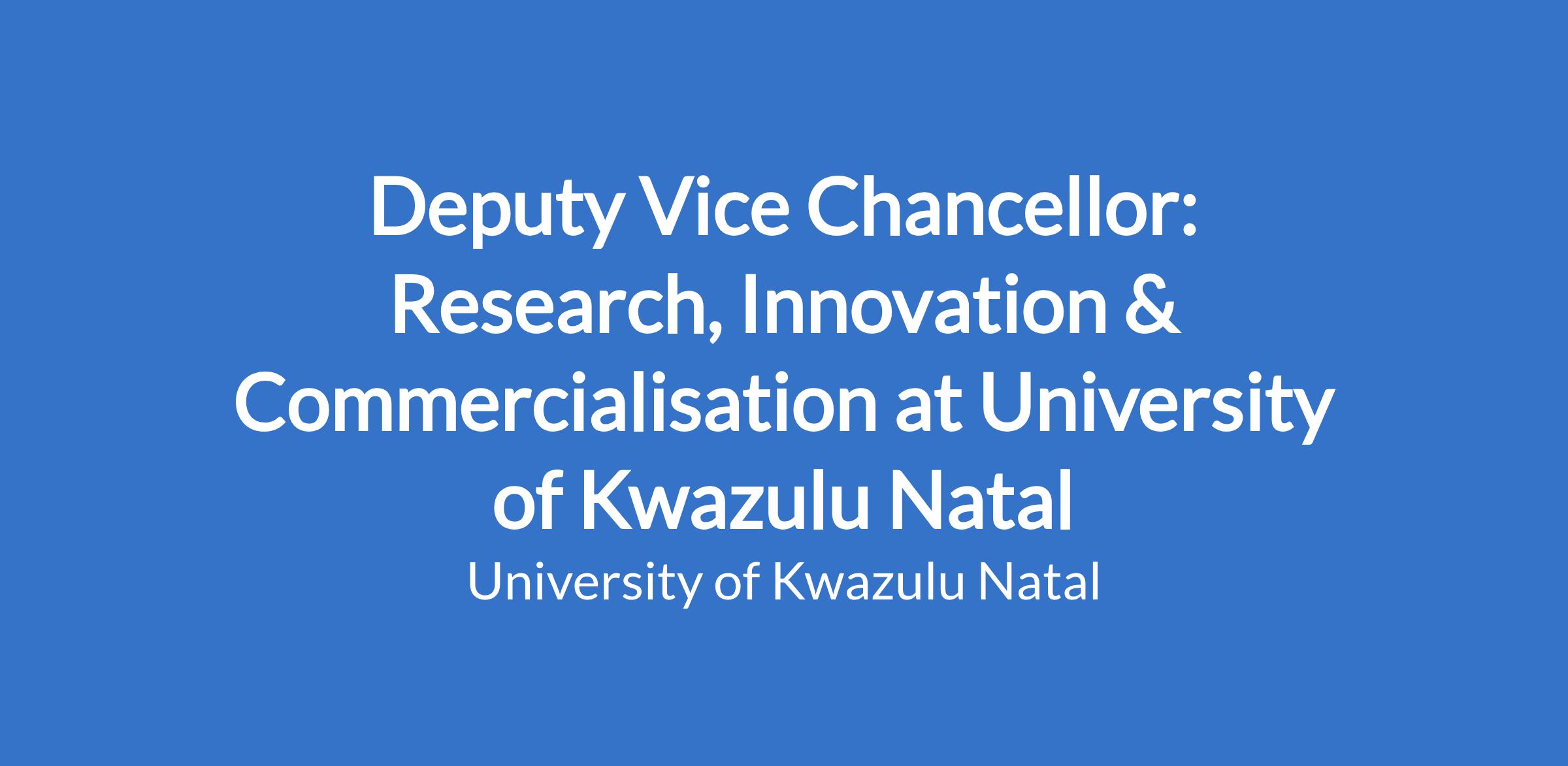 The Deputy Vice-Chancellor (DVC): Research, Innovation and Commercialisation provides intellectual leadership and vision for the University in the area of research, innovation and knowledge exchange. S/he will be expected to lead the development and implementation of the University's overall strategy to meet its goal of pre-eminence in research. This entails building a research ethos that fosters excellence, encourages novel ideas, supports young researchers, and nurtures postgraduate students in order to be a pre-eminent producer of new knowledge both locally and globally, and defines UKZN as the premier university of African scholarship.