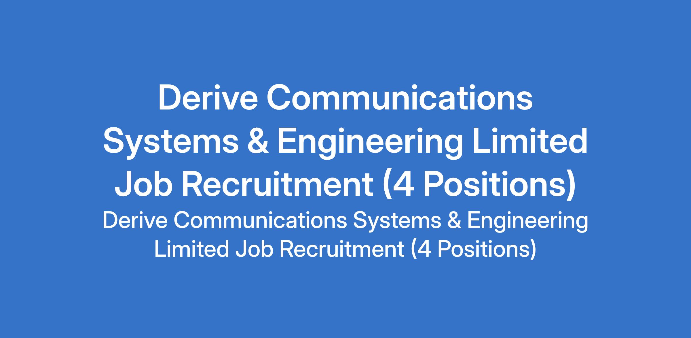 Derive Communications Systems & Engineering Limited Job Recruitment (4 Positions)