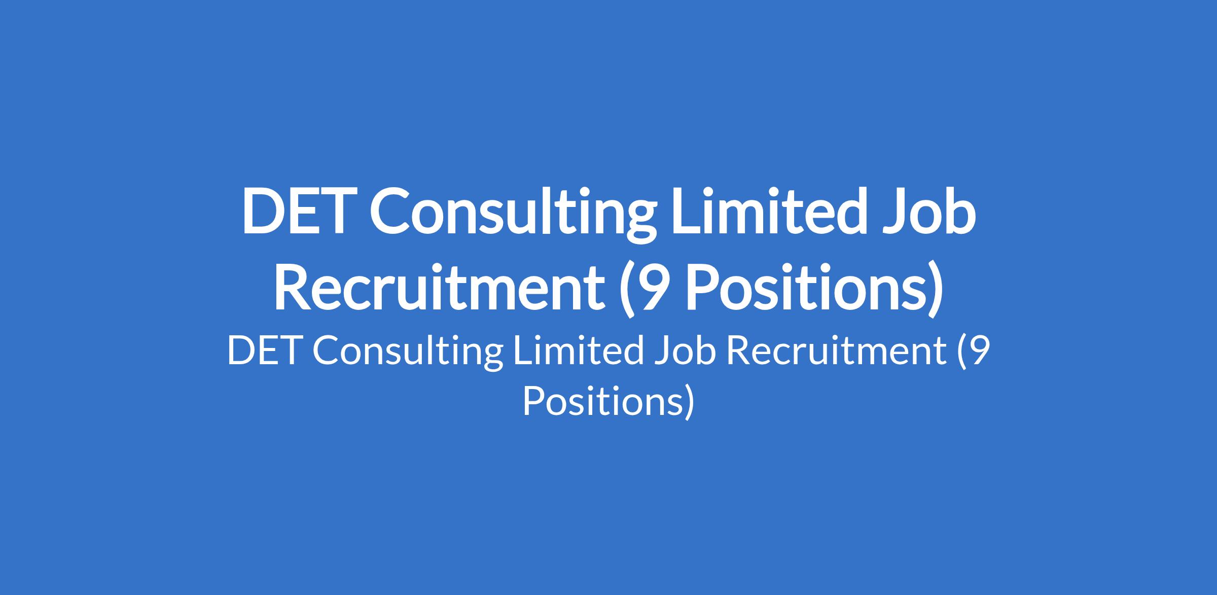 DET Consulting Limited is recruiting suitable candidates to fill the following positions in Lagos and Ogun States: Admin & Human Resources Manager; Customer Service Representative (Telecommunications) ; Marketing Executive; Bar Attendant; Operations Team Lead; Sales and Marketing Executive (Renewable Solar Energy) and Junior Accountant.